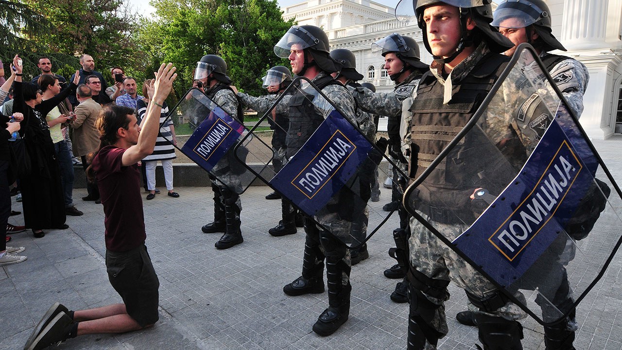 Prosvjed je organiziran nakon što je oporbeni čelnik optužio kabinet konzervativnog premijera Nikole Gruevskog da je 2011. zataškao policijsko ubojstvo 22-godišnjeg muškarca tijekom proslava koje su uslijedile nakon izbora.