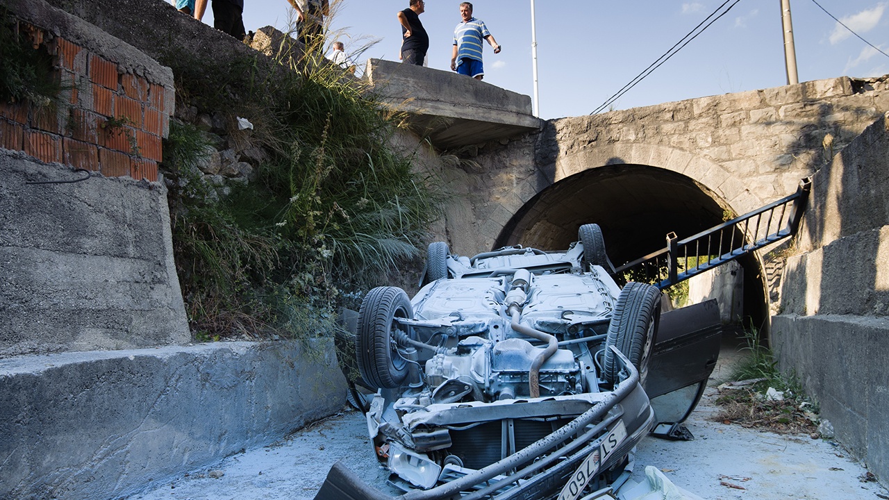 Neslužbeno, vozač automobila koji je završio na krovu nekoliko metara ispod razine kolnika je teže ozlijeđen…