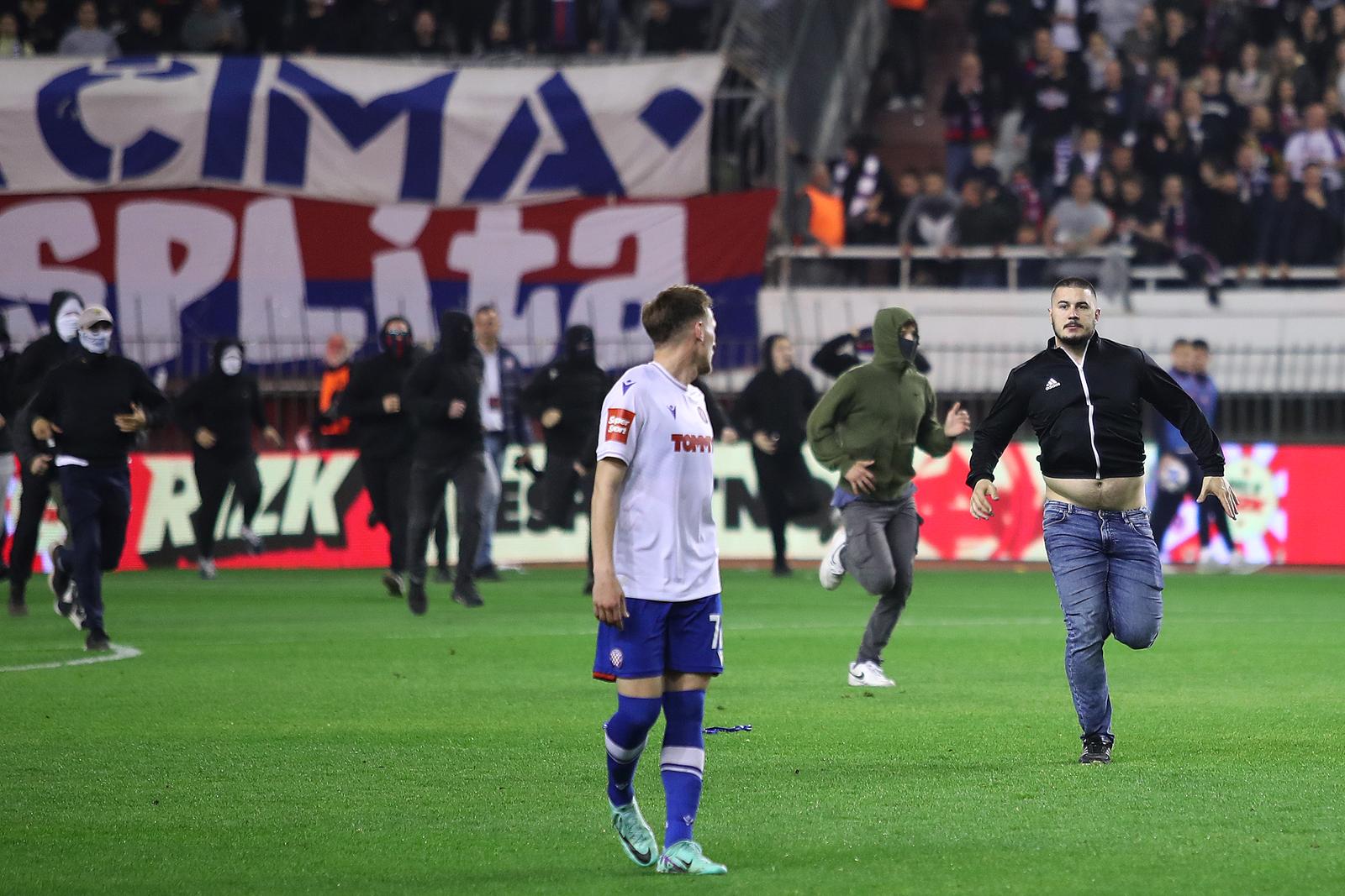 Nevjerojatne scene nakon završetka utakmice, upad navijača sa sjeverne tribine na teren, a nakon hrabrog bijega istih od policije, divljačko kidanje i bacanje sjedalica na tribini, što je trajalo i trajalo, potpuno je zasjenilo utakmicu. I gotovo da nam je žao napisati da se Ivan Perišić nakon sedam mjeseci od teške ozljede koljena vratio igri i ušao u 72. minuti ne bi li pomogao Hajduku da nekako pronađe put do finala. Bio je ovo i debi – tužni debi – Perišića za Hajduk.