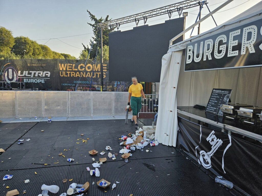 Nakon noćas održane druge večeri Ultra Europe Festivala, djelatnici Čistoće jutros oko 5 sati su započeli s čišćenjem prostora unutar stadiona u Parku mladeži te okolnog prostora. U čišćenju je sudjelovalo 40 djelatnika.