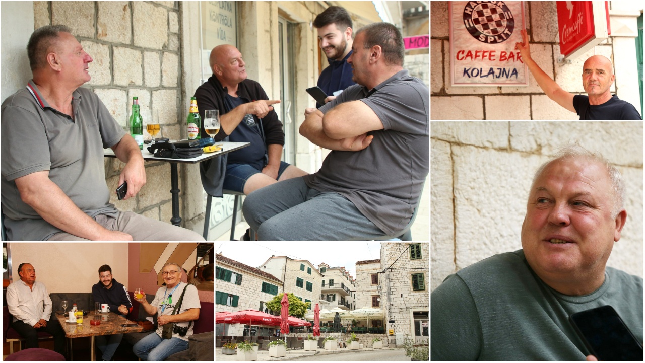 – Lokalpatriot sam, srce mi je ovoliko – širi ruke Marijan Knezović, vlasnik “Kolajne” čiji logo, svega par metara od Tina Ujevića, krasi grb Hajduka. Veliki grb je i s druge Tinove strane da putnik namjernik nema puno razmišljanja koji to klub ima primat u gradu podno Kule od kamena. Marijanov sin Josip predsjednik je Društva prijatelja Hajduka Imotskog.