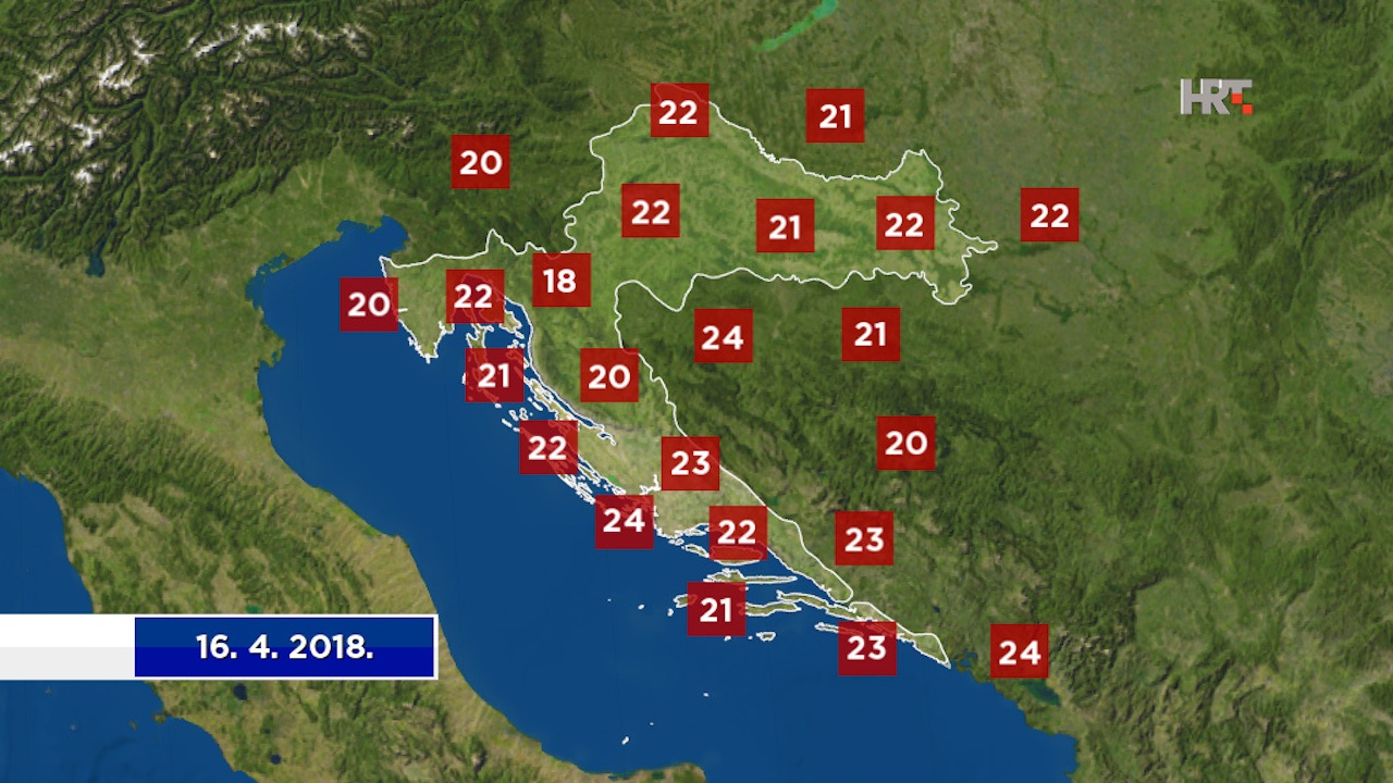 Povremene će kiše u većini kopnenih predjela biti i u utorak, u istočnoj Hrvatskoj ponegdje vjerojatno i u srijedu, tijekom koje će se sa zapada razvedravati pa će od četvrtka prevladavati sunčano. Puhat će slab i umjeren sjeveroistočni i sjeverni vjetar, a najviša će temperatura zraka biti većinom od 17 do 22 °C, krajem tjedna i malo viša.
