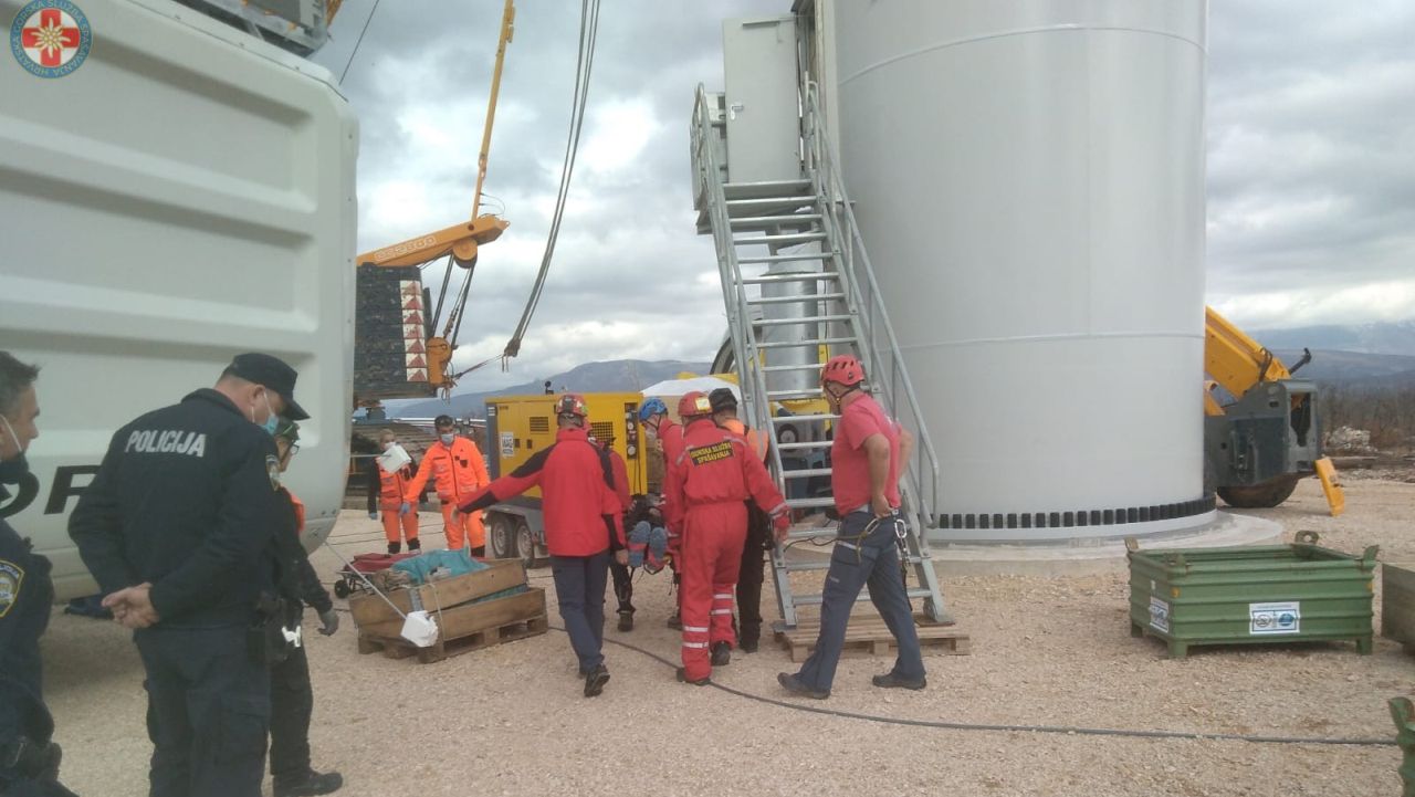 Ozlijeđeni radnik se nalazio unutar vjetroagregata, na visini od 35 metara. Zbog uklještenja živca u lumbalnom dijelu kralježnice i jakih bolova nije se mogao samostalno spustiti. Na mjesto događaja izašlo je sedam spašavatelja.