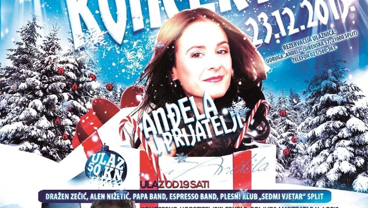 Veliki dobrotvorni božićni koncert „Anđela i prijatelji“ održava se u srijedu, 23. prosinca u Kongresno-ugostiteljskom centru u Lori, Dom HV-a, u korist splitske Udruge roditelja za djecu najteže tjelesne invalide i djecu s teškoćama u razvoju „Anđeli“.