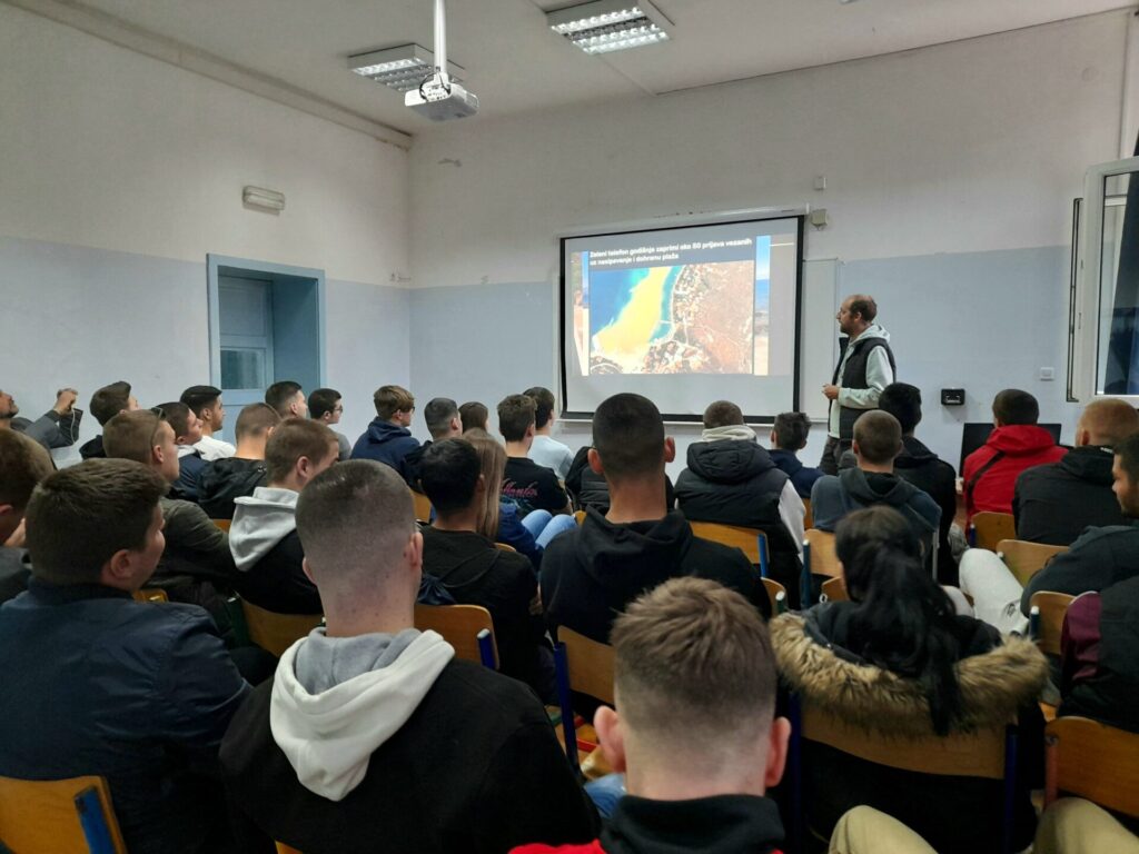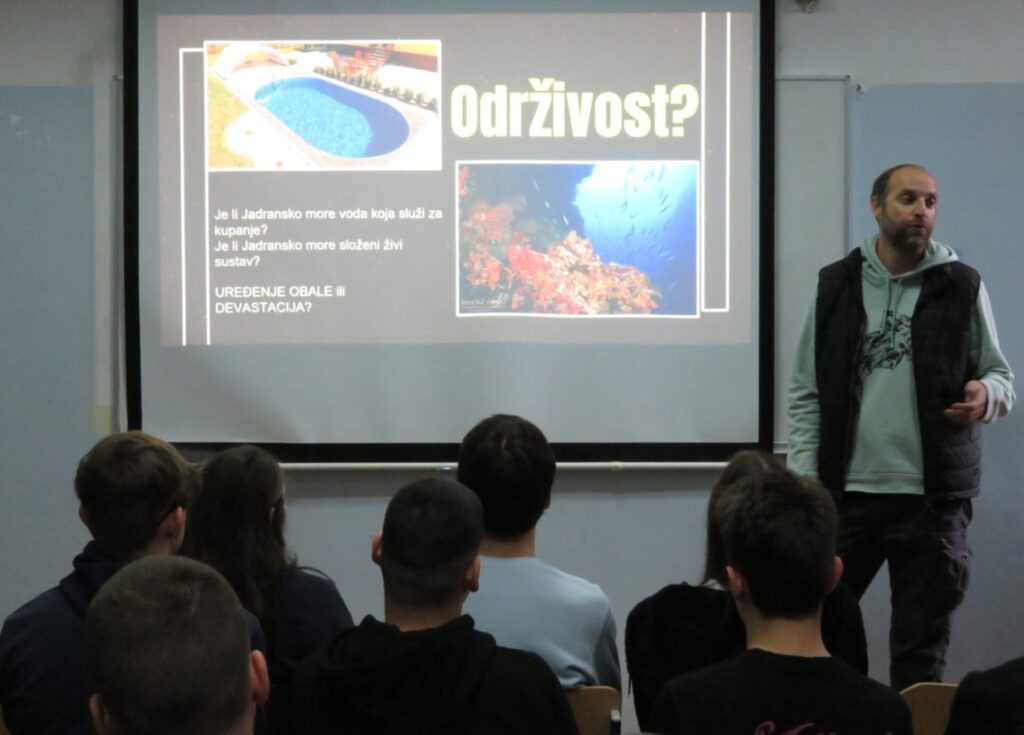 Na predavanju se „ćakulalo“ o razlikama između nadohrane i nasipavanja obale, zakonskim okvirima koji reguliraju te procese, studijama o njihovom utjecaju na morski okoliš te o mnogim drugim aktualnim podtemama vezanim uz ova pitanja. Zaključak je da nasipanjem obale stvaramo “mrtvo more”, kojemu je praktički jednako kupanje u bazenu namijenjenom turizmu. Očito, to nije u interesu naših učenika ribarsko-nautičkog smjera niti mnogim građanima. Naime, život ovisi o moru, posebice o ribolovu. Sadržaj predavanja je vrlo jasan. Kroz povijest, čovjek je uvijek intervenirao u prirodu, no od pojave intenzivnog razvoja turizma taj trend se dramatično ubrzao do razine koja nije održiva te postao ozbiljna prijetnja ekosustavima, staništima i prirodi općenito.