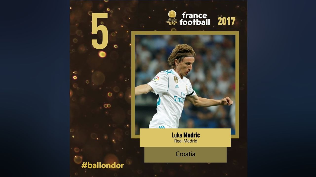 Ispred Modrića su samo Buffon, Neymar, Messi i kao najbolji igrač svijeta u protekloj sezoni Cristiano Ronaldo. Portugalcu je ovo peta Zlatna lopta u karijeri, te se tako izjednačio s Messijem po broju Zlatnih lopti.
