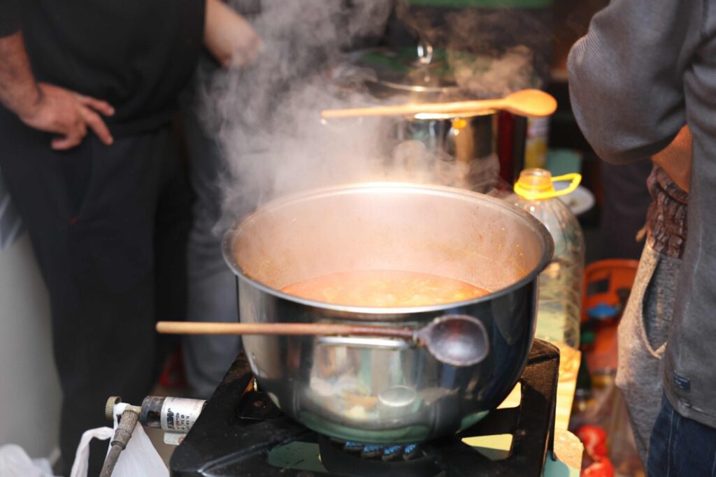 Prostor na sinjskom bazenu bio je kao košnica, pretijesan za sve one koji su bili iza i ispred lonaca, ali se za plastični pijat spize i kapljicu vina čekalo i na otvorenom premda su noć parale kišne kapi. Radne jedinice bile su na postavljenim stolovima, često s ekipama toliko blizu jedne drugoj, da je svaki lonac imao barem kapljicu znoja sa čela.