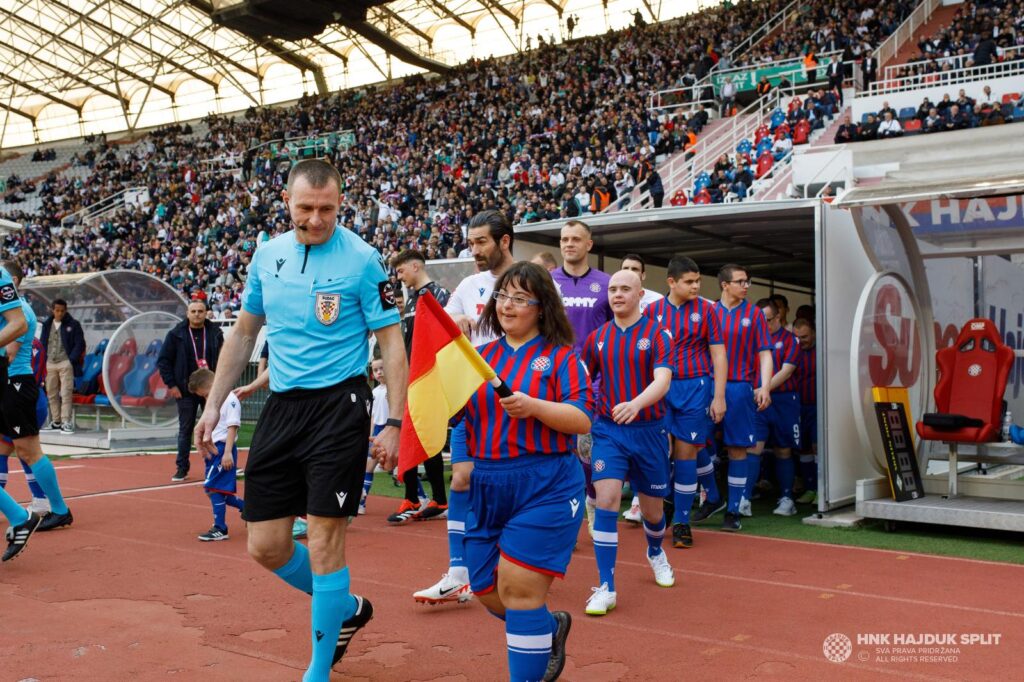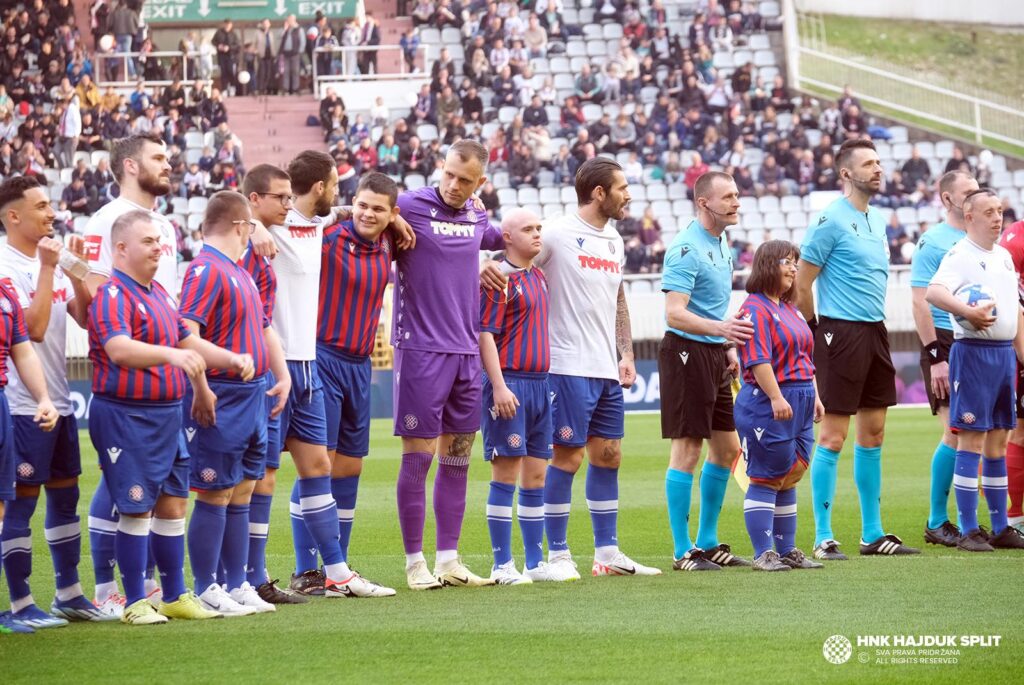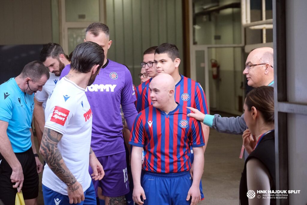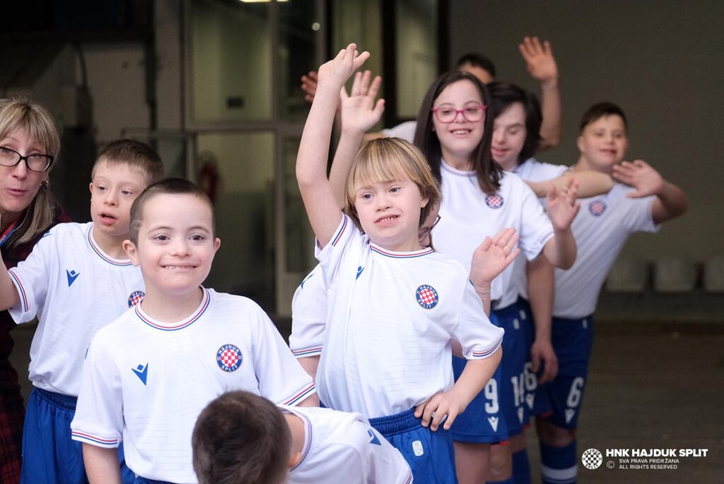 Emotivni trenutak: Igrači Hajduka i Lokomotive s djecom s Downovim sindromom