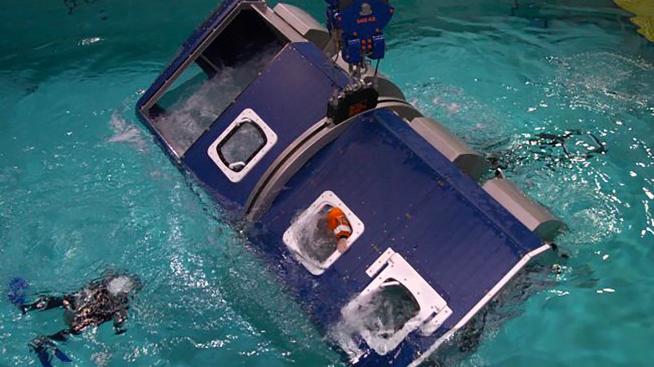 Trening uključuje simulirano uranjanje (pad) u vodu uz rotacije i razne popratne situacije. Pritom se kandidate upućuje na neke najvažnije radnje prilikom pada kao sto su pravilna reakcija prilikom samog pada, izbjegavanje udisanja dima, izvlačenje iz helikoptera na najbrži i najsigurniji način, te izranjanje na dah ili pomoću boce kisika.