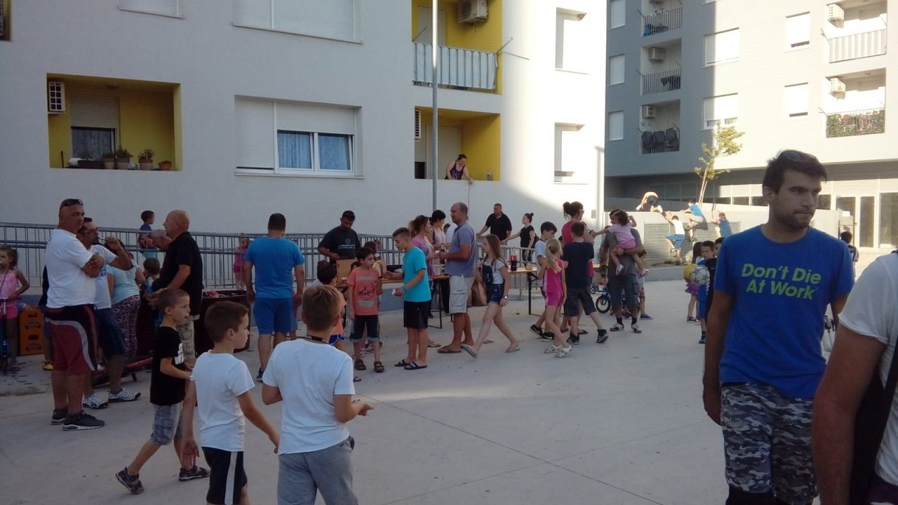 početak radova na dječjem igralištu pored zgrada. Poslije radova održalo