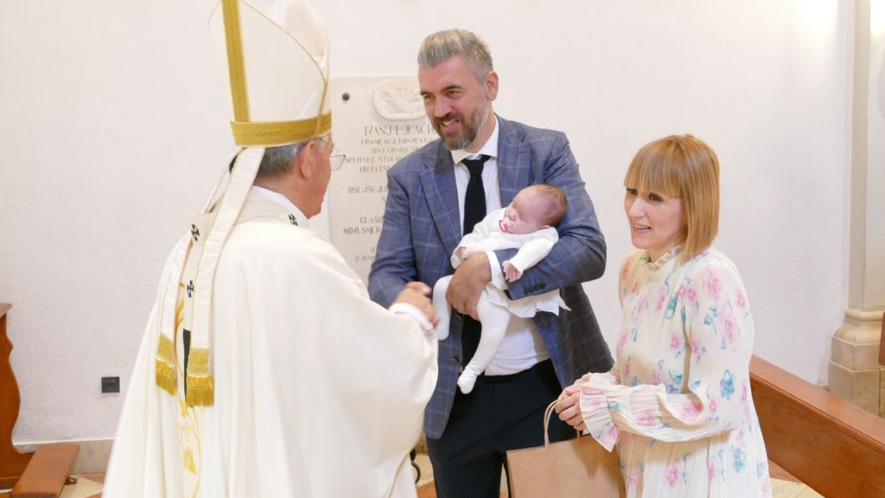 Slavlje u obitelji Pletikosa: Nadbiskup Barišić krstio peto dijete, malu Mariju