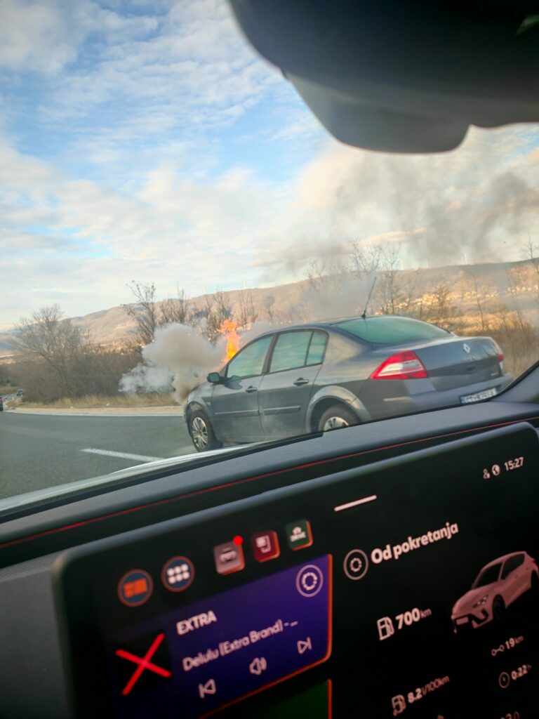 [FOTO] Automobil se zapalio u vožnji kod Dicma