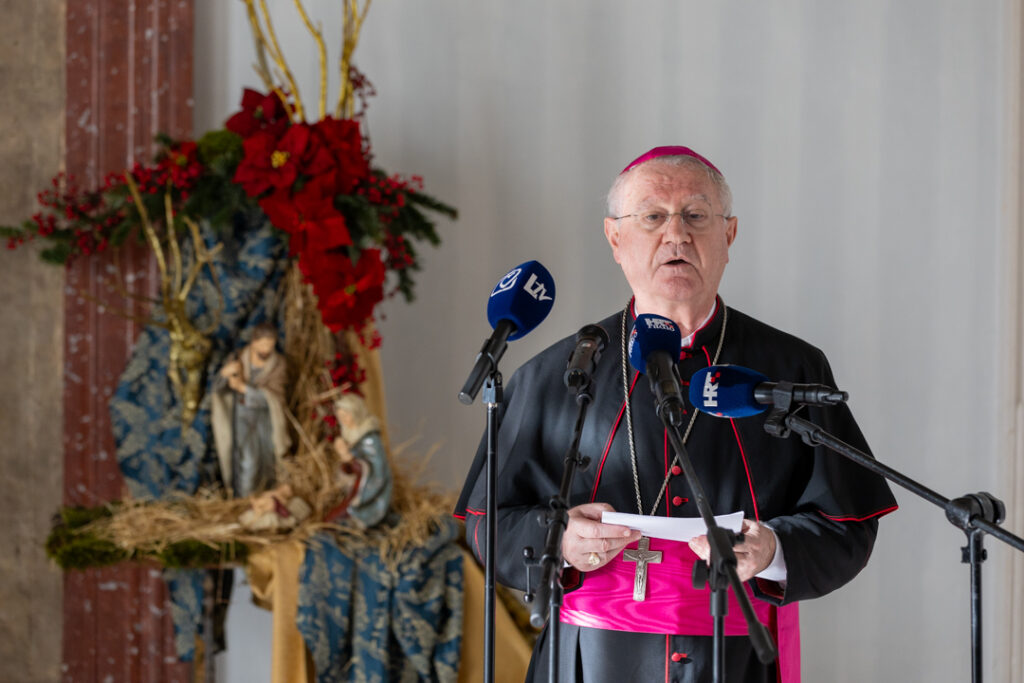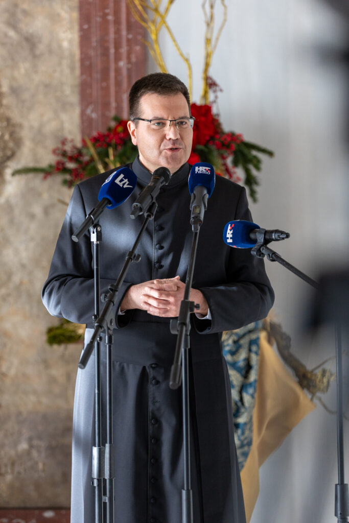 -Naša nadbiskupija je jako velika, pa sam zatražio pomoćnog biskupa. Sveti Otac to je odobrio, i nadam se da će se to ostvariti u ne tako dalekoj budućnosti. Uz ova važna pitanja, nadbiskup se osvrnuo i na projekte poput novog svećeničkog doma, koji je ključan za brigu o starijim i bolesnim svećenicima. Također je najavio pripreme za nadolazeću Jubilejsku godinu koja je „posebna godina u crkvenom kalendaru, godina u kojoj je kršćanin pozvan na posvećenje svoga vlastitog života, ali i da dade veći doprinos boljitku cjelokupnog društvenog života u ambijentu u kojem živi.“ U njoj će se slaviti brojne važne obljetnice kao što 1700 godina od crkvenog Sabora u Niceji i 1100 godina hrvatskog kraljevstva i Splitskih crkvenih sabora te 60 godina od završetka Drugog vatikanskog koncila. U kontekstu proslave jubilejske godine mons. Križić je najavio i nacionalno hodočašće u Rim u prvoj polovici listopada sljedeće godine te dodao kako će se i u našoj nadbiskupiji organizirati mnoštvo programa povodom Jubileja. Na kraju je još jednom svima zahvalio što su se odazvali na božićno primanje te uzvanicima, njihovim obiteljima i ustanovama koje predstavljaju zaželio sretan Božić i od Boga blagoslovljenu 2025. godinu.