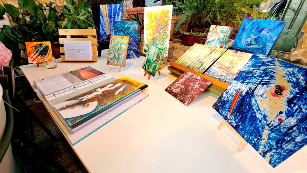 U ovom čudesnom svijetu umjetnosti moglo se uživati u predstavljanu slikarice Ljubice Kostović Ljube i njenih radova te slika Šimuna Martinisa te stihovima Nenada Rogulja. Predstavljena je i veoma zanimljiva mapa grafičko pjesničkih zapisa iz Komiže Šimuna Martinisa i Jakše Fjamenga “More u kamenu”