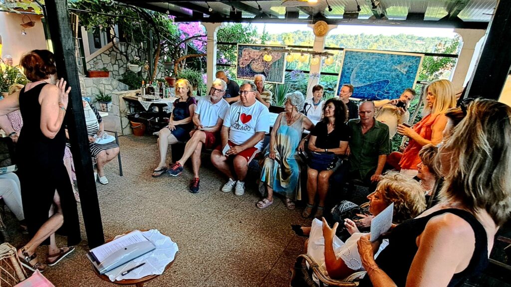 Po tradiciji, a zahvaljujući ljubaznosti gospođe Heljä Tramontane koja je svoj atelje pretvorila u galeriju, održana je večer puna raznolikosti izričaja u prekrasnom ambijentu mediteranskog vrta s pogledom na more.