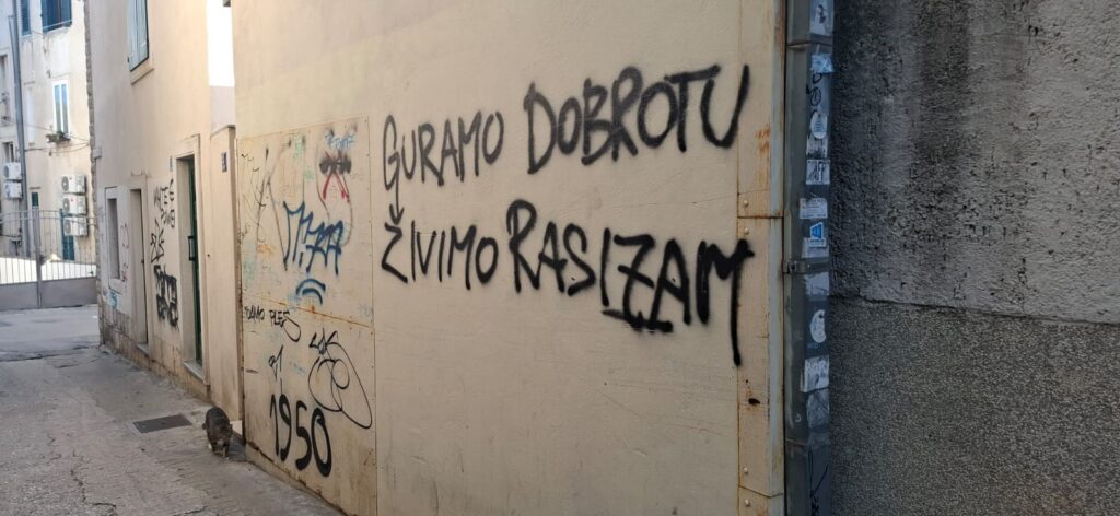 Split je ovog vikenda ponovno postao mjesto zabrinjavajućih ispada. Po Varošu su jutros osvanuli grafiti s uvredljivim i nasilnim porukama, među kojima se mogu pročitati natpisi poput „Ubi Srbe“, „Guramo slobodu, živimo rasizam“ i „White power“.