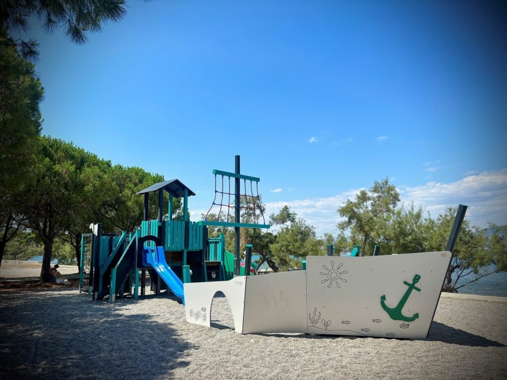 Dodatno, na sportskom igralištu Mali plac, dio je “morskog zida” osmišljenog od strane mlade umjetnice Flore Kliškić, što dodatno obogaćuje edukativno iskustvo djece u Gradu Supetru.