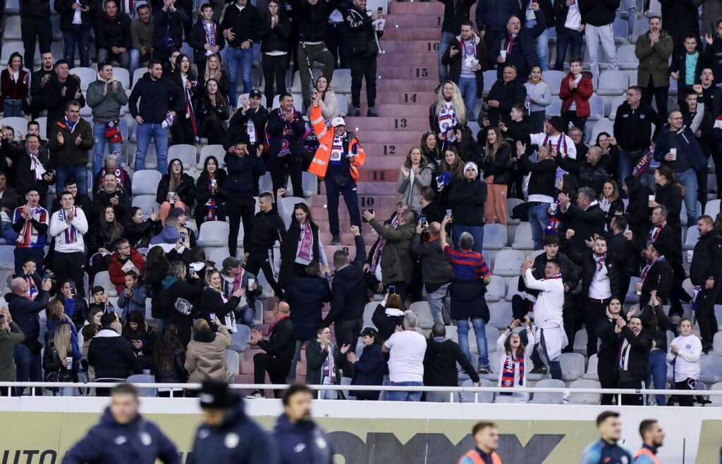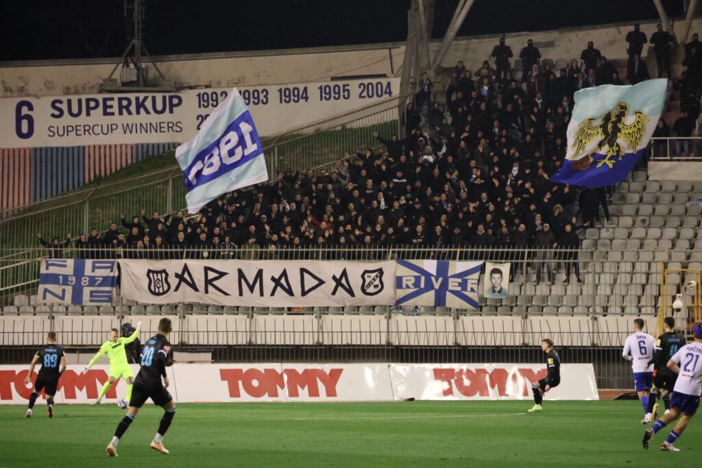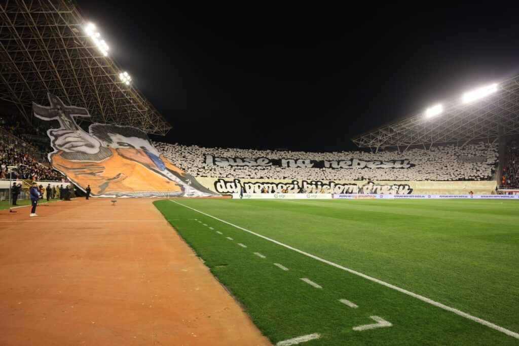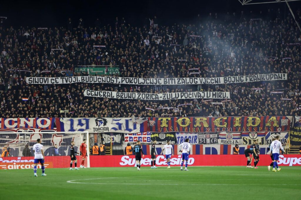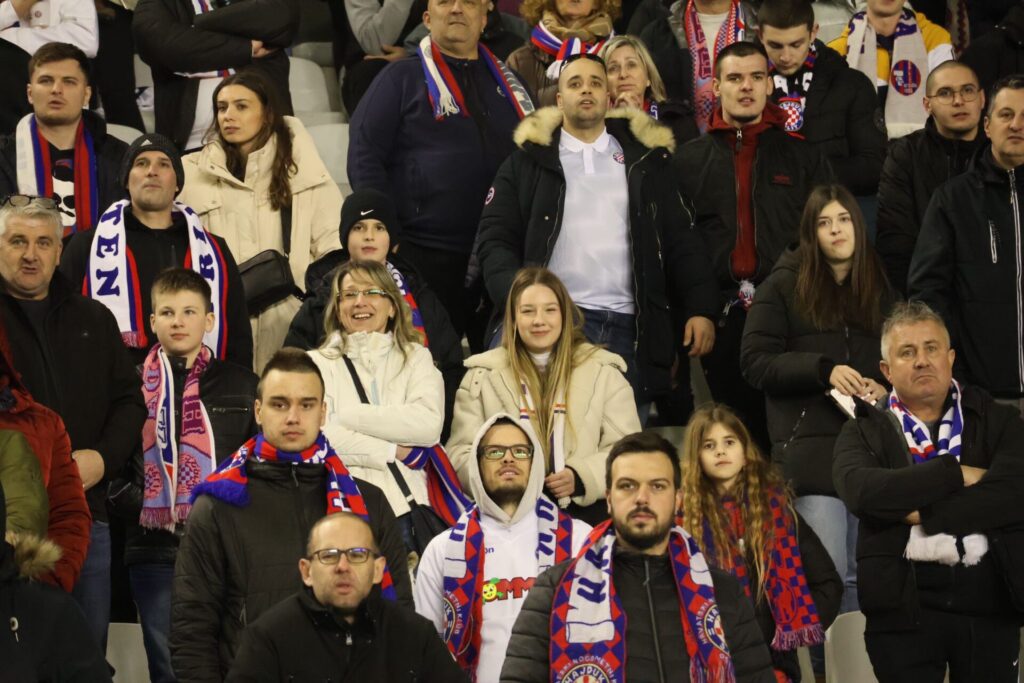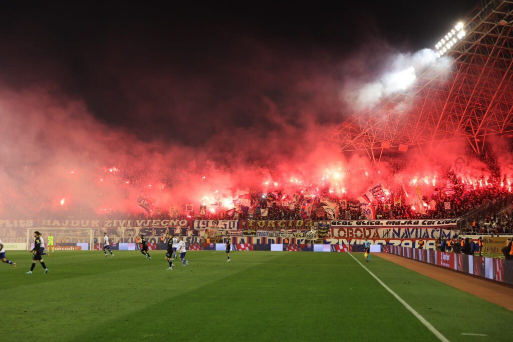 Hajduk utakmicu dočekao je u euforičnoj atmosferi, u trenucima dok su na Poljudu ohrabreni dolascima Laszla Kleinheislera, Ivana Perišića i Josipa Brekala koji su večeras pozdravili publiku u Splitu.