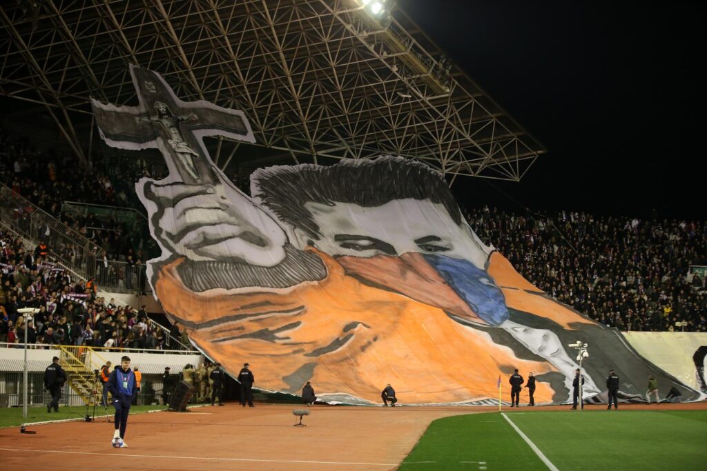 Torcida je na samom početku utakmice spremila posebnu koreografija za dolazak Perišića i Brekala „Isuse na nebesu, daj pomozi bijelom dresu“.