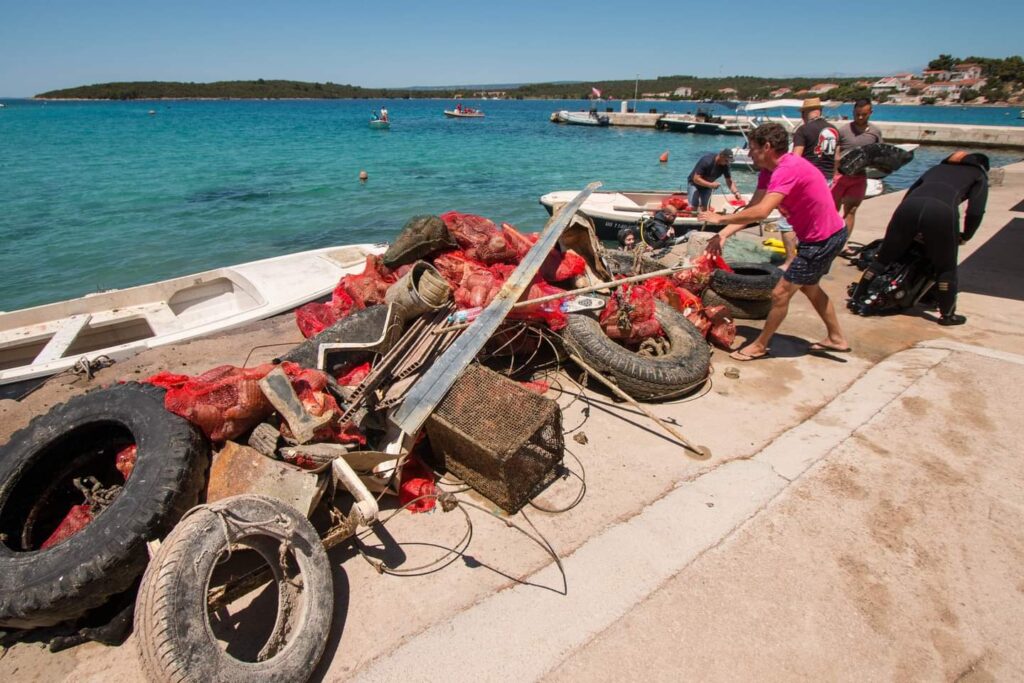 Negdje oko 14 sati ronioci su se vratili. Gumenjaci i brodovi pretrpani smećem, istovara se na rivi pa se dalje vozi na deponij. I tu nije bio kraj druženju. Tek je počelo, rekao je Igor Đuričić, predsjednik Ekološko ronilačkog kluba Lanterna. Slijedio je ručak pa ronjenje do kraja vikenda na najljepšim lokacijama pelješkog podmorja.