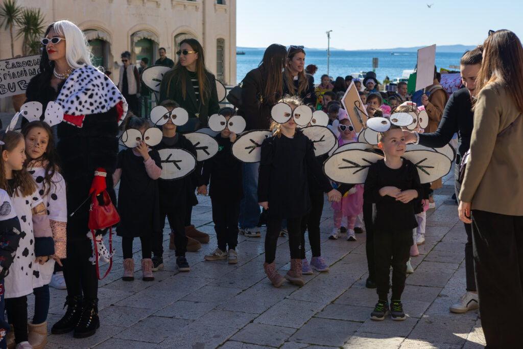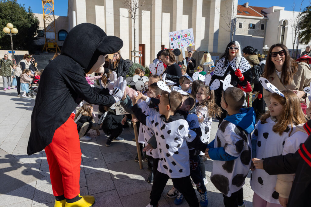 Vesela maškarana povorka dječjih vrtića prošetala je danas Splitom, donoseći šarenilo, smijeh i kreativne kostime! Na čelu povorke, koja je krenula malo iza 10 sati od HNK kroz Marmontovu, bile su Mažoretkinje grada Splita i Limena glazba Žrnovnica.