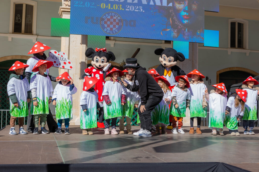 Na Prokurativama su malene maškare dočekali Čarobni animatori te Mickey i Minnie, a svaka skupina bila je predstavljena na pozornici. U moru kreativnih kostima, teško je bilo izabrati pobjednika, ali titulu najbolje skupne maske ponio je DV Hugo i njihovoj skupnoj maski glazbenih instrumenata koju su prigodno nazvali – Hugorkestar!