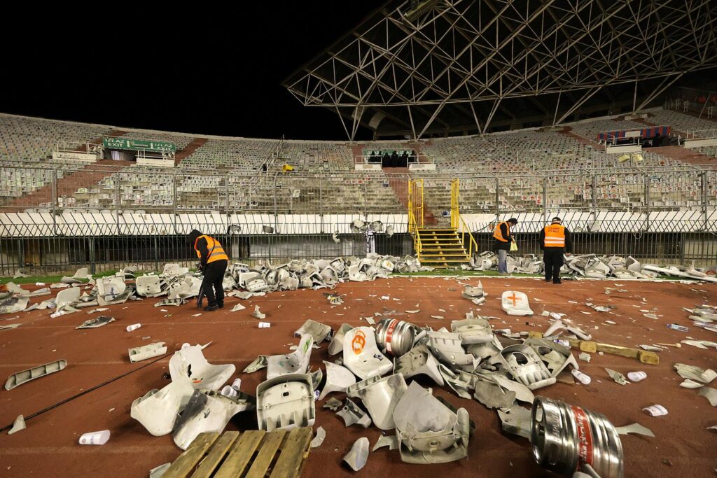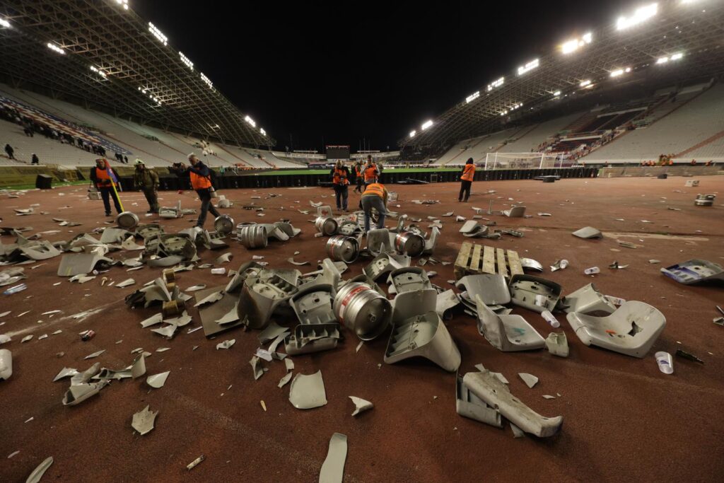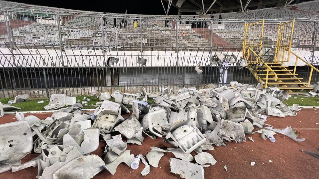 Situacija se trenutno primirila, a pogledajte kako sjeverna tribina izgleda nakon incidenta.