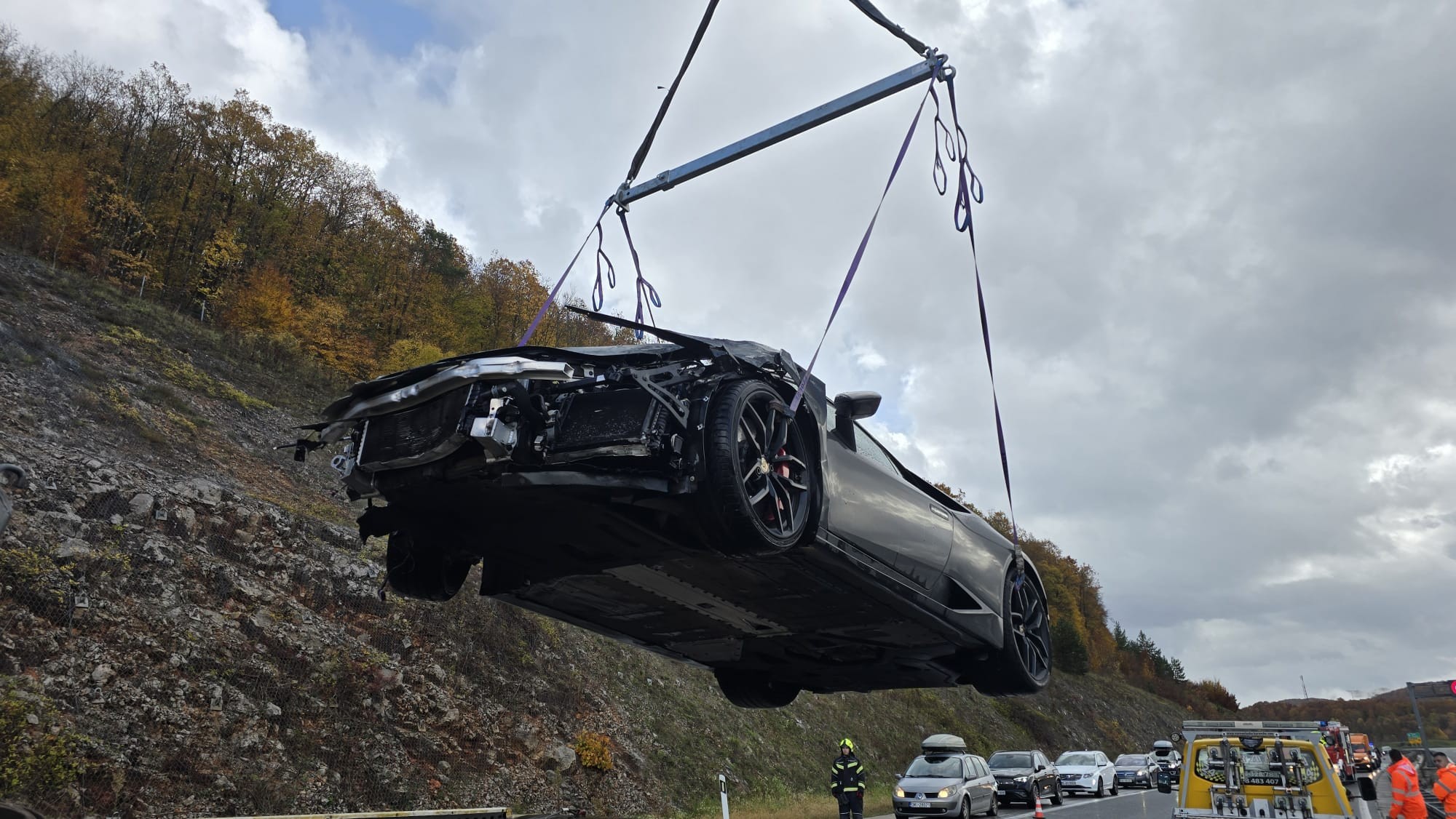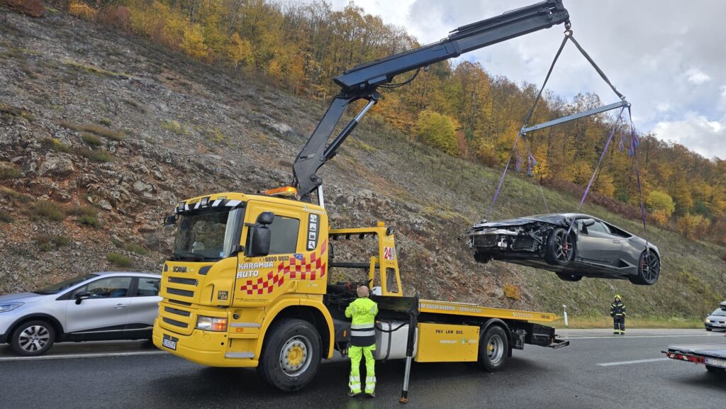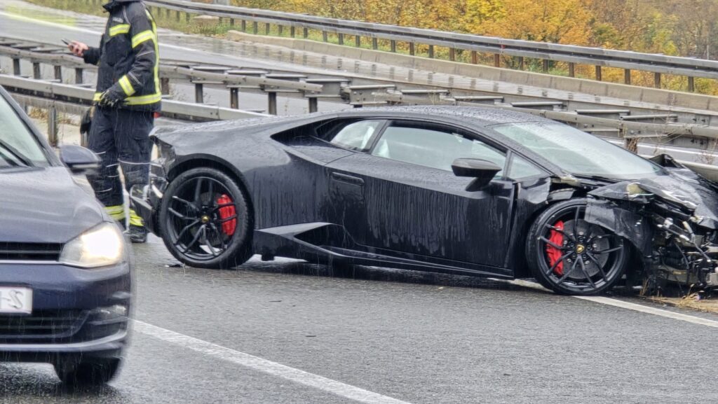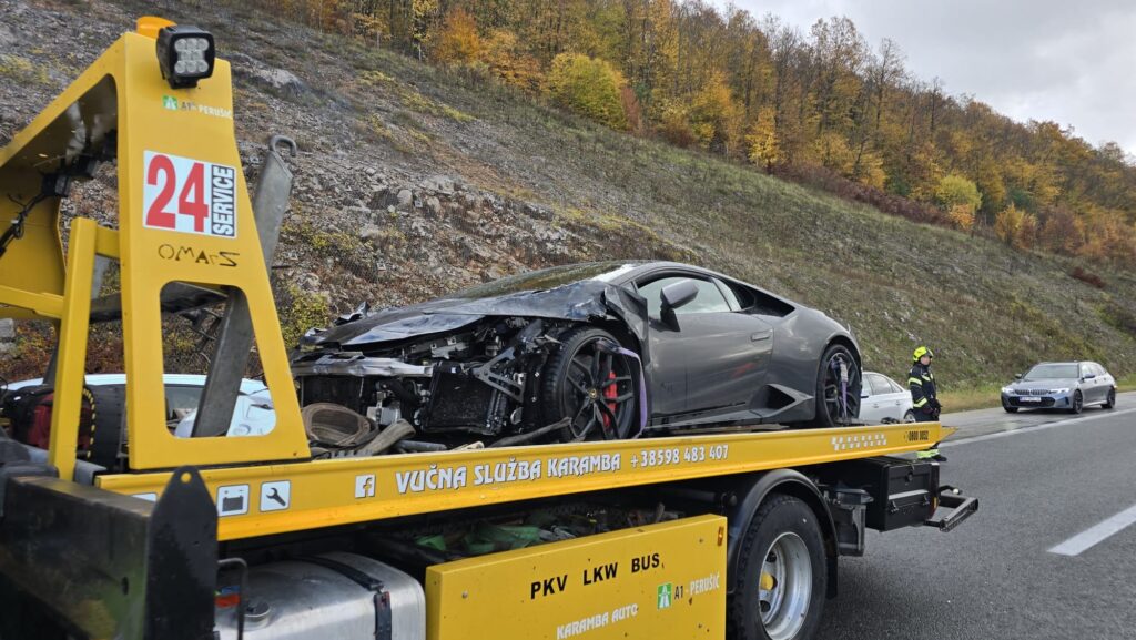 Iako policija nije objavila marku automobila, prema fotografijama s mjesta nesreće riječ je o sportskom automobilu koji oblikom karoserije i svjetlosnim potpisom podsjeća na Lamborghini Huracan, prenosi Index.