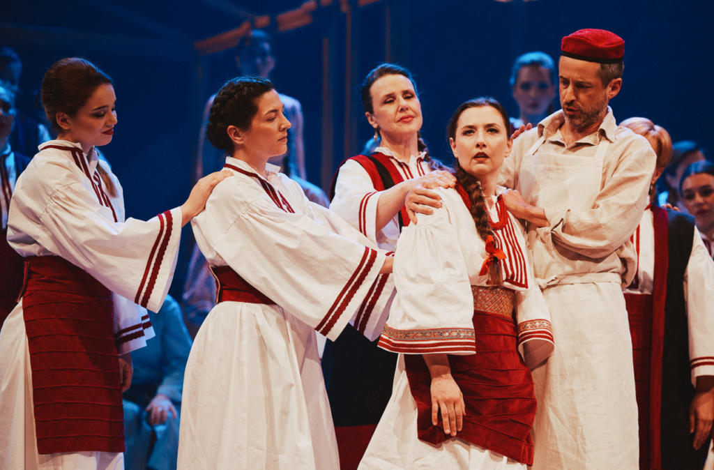 Premijernom izvedbom ravnao je Mikhail Sinkevich, dok su u naslovnim ulogama nastupili Martin Sušnik kao Mića, Božo Župić kao Marko, Terezija Kusanović kao Doma, Josipa Lončar kao Đula, Marko Lasić kao Mlinar Sima te Tea Požgaj kao Čobanče.