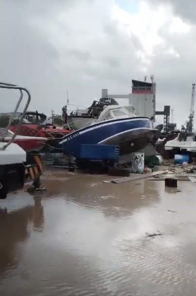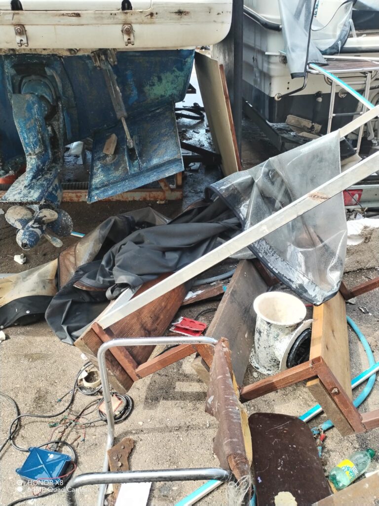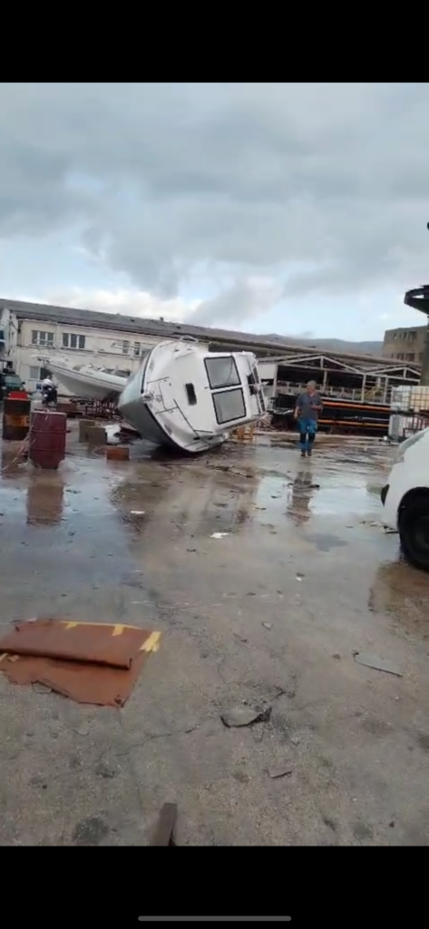 Veliko nevrijeme izazvalo je štetu i u Salonit luci. Kako nam javljaju i šalju čitatelji – potpuno su uništeni alati, dijelovi brodske opreme su potopljeni kao i hala. Nekoliko brodova se prevrnulo s trailera, a materijalna šteta je ogromna.
