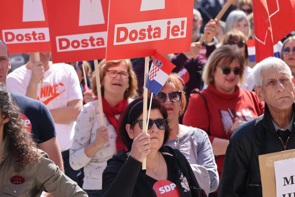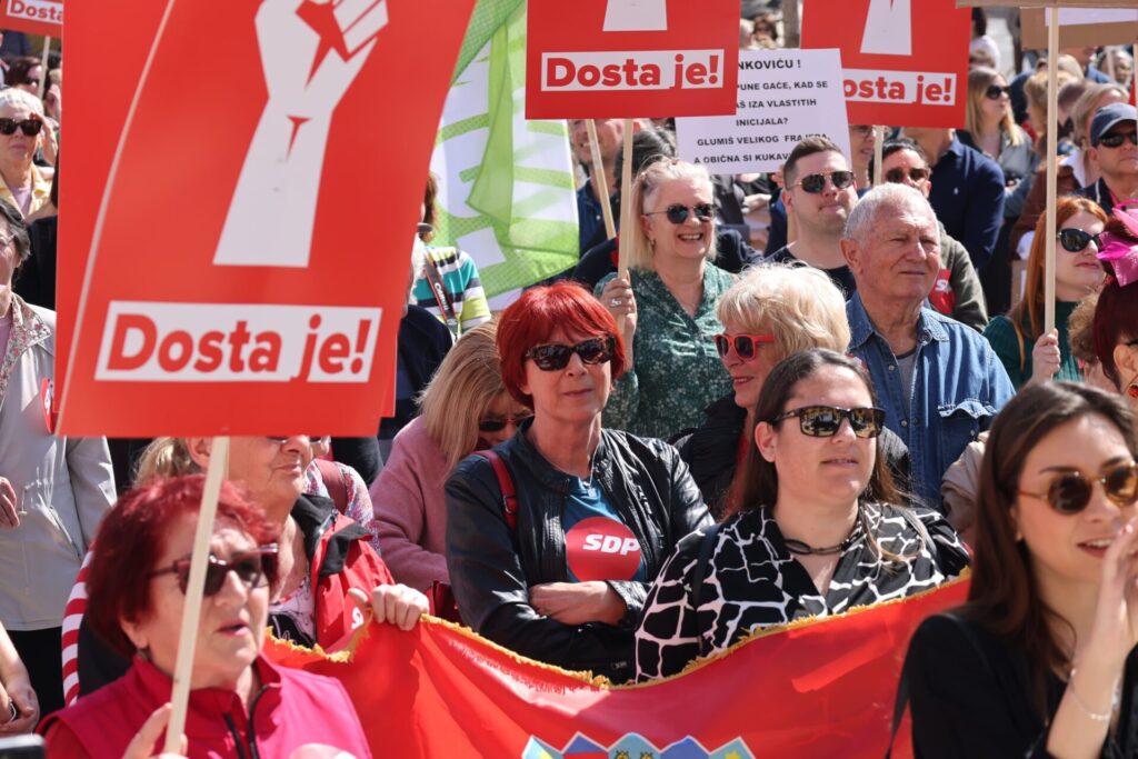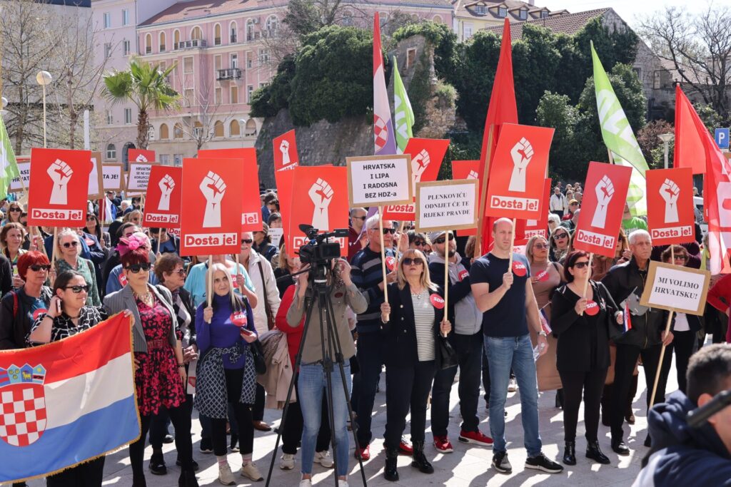Koalicija Rijeke pravde i stranka Možemo! danas, mjesec dana uoči izbora, održava prosvjedne skupove pod nazivom Dosta je! Prosvjed se održava istodobno u pet gradova s kojih se poručuje da je “dosta tiranije, laži i korupcije, dosta je HDZ-a” te da će oni Hrvatskoj vratiti nadu i budućnost.