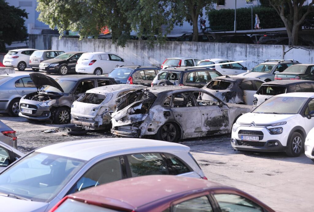 Splitska policija završila je očevid na parkingu u Tijardovićevoj ulici na Pujankama, gdje je noćas izgorjelo nekoliko vozila. Istragom je utvrđeno da je požar započeo na terencu Audi s talijanskim registarskim oznakama, kojeg koristi talijanski državljanin poslovno povezan s Hrvatskom. Vatra se brzo proširila na obližnja vozila, uzrokujući značajnu štetu.