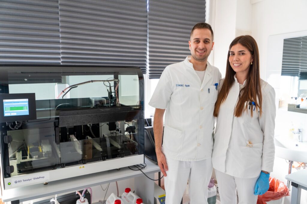 -Koliko je važna ova dijagnostiga govori činjenica je broj nalaza sve veći, stoga smo u protekle dvije godine unaprijediti ovu dijagnostiku na našem Zavodu tako da smo nabavili najbolju opremu koja je vodeća u svijetu za tekućinsku citologiju koja na potpuno novi dijagnostički način način uključuje i umjetnu inteligenciju, istaknuo je predstojnik Zavoda za patologiju, sudsku medicinu i citologiju KBC-a Split prof. dr. sc. prim. Šimun Anđelinović i nadodao kako su u tijeku pripreme kako bi još više podligli razinu svojih usluga uvođenjem tzv. molekularnog modula koji će iz jednog uzorka npr. PAPA testa, moći analizirati i druge uzročnike poput klamidije ili HPV virusa – dakle iz jednog uzorka kompletna slika o stanju pacijentice.