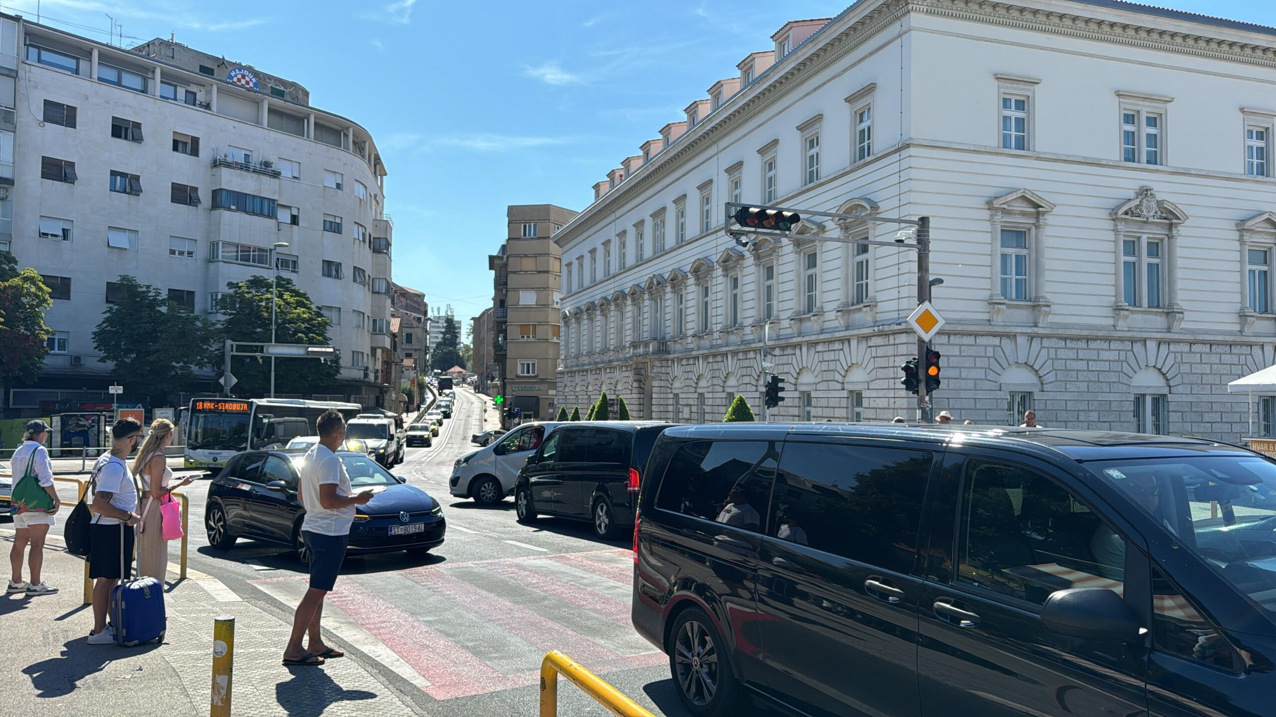 Jutros je došlo do kvara na semaforima na raskrižju Poljane kneza Trpimira, Zagrebačke ulice i Ulice kralja Zvonimira, kod splitskog Pazara. Riječ je o izrazito prometnoj lokaciji koja u ljetnim mjesecima bilježi pojačan promet zbog velikog broja turista, dostavnih vozila i lokalnog stanovništva.