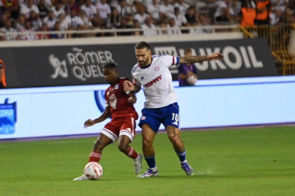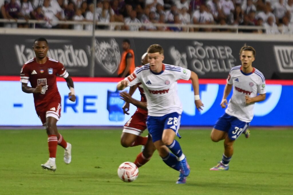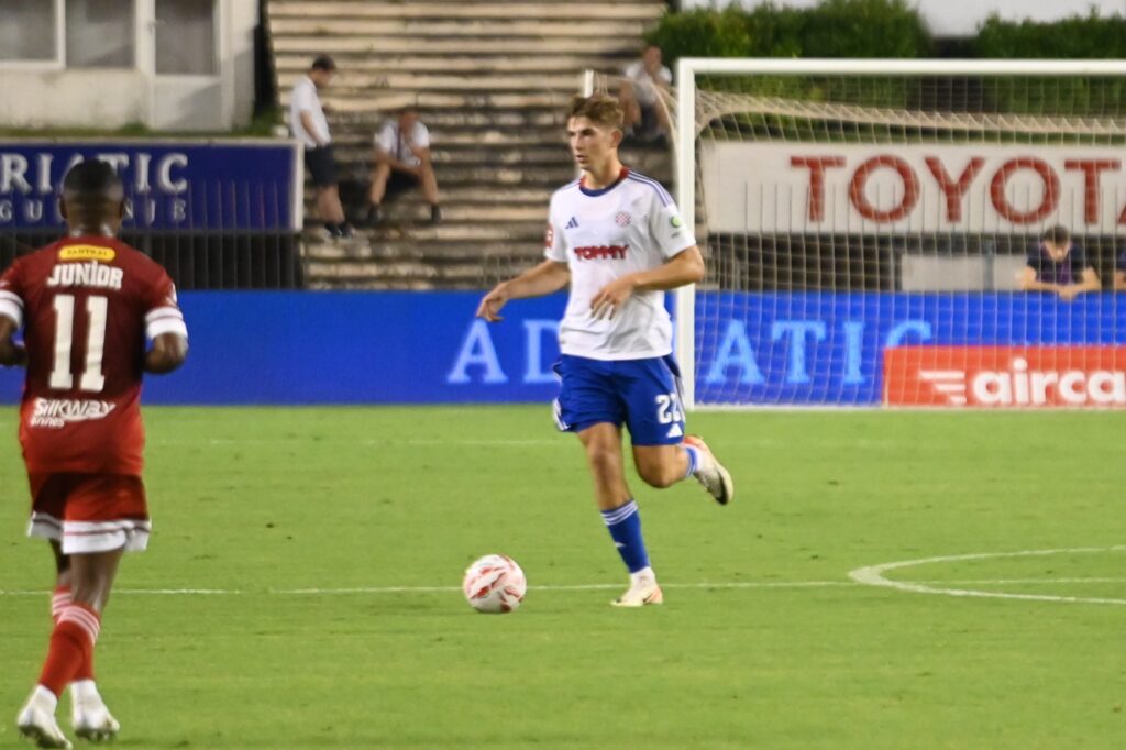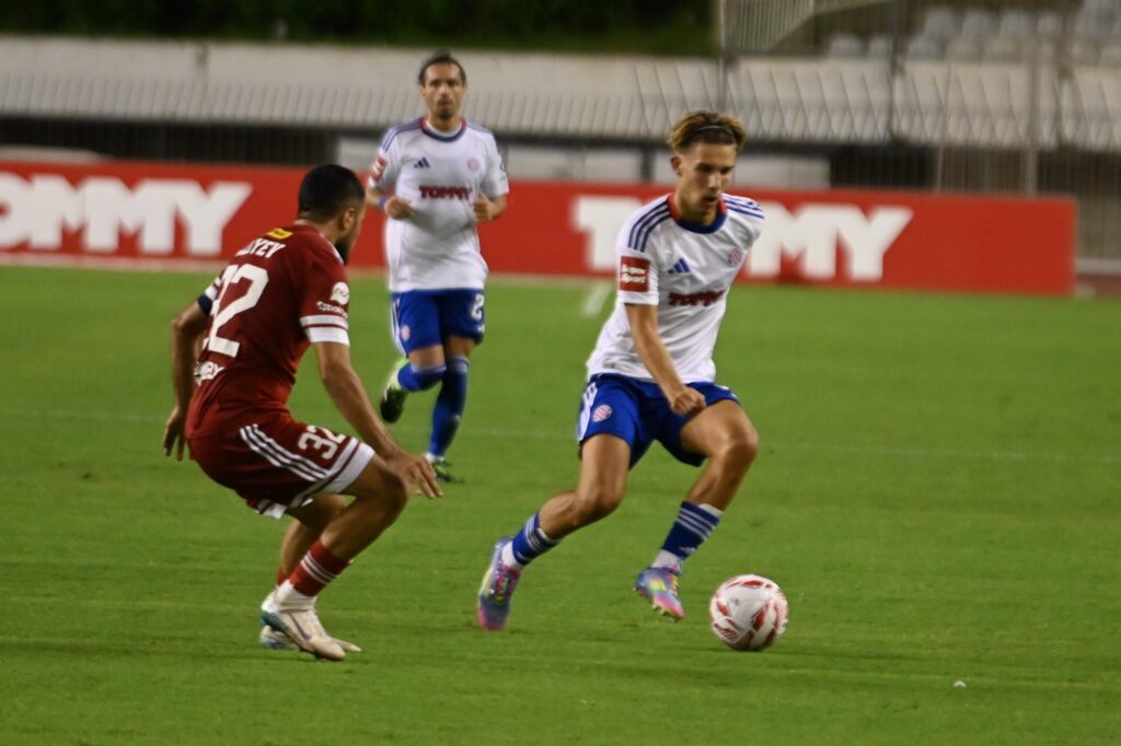 Preko 30.000 navijača Hajduka ispunilo je Poljud u vjeri da će Bijeli napraviti prvi uspješan korak u Konferencijskoj ligi. Atmosfera je od početka bila usijana, uzavrela, baš onako kako smo to „tisuću puta“ iskusili, pa možemo zamisliti kako je u tom grotlu bilo debitirati Branimiru Mlačiću. Tek mu je 18 godina, dobio je prigodu za pamćenje…