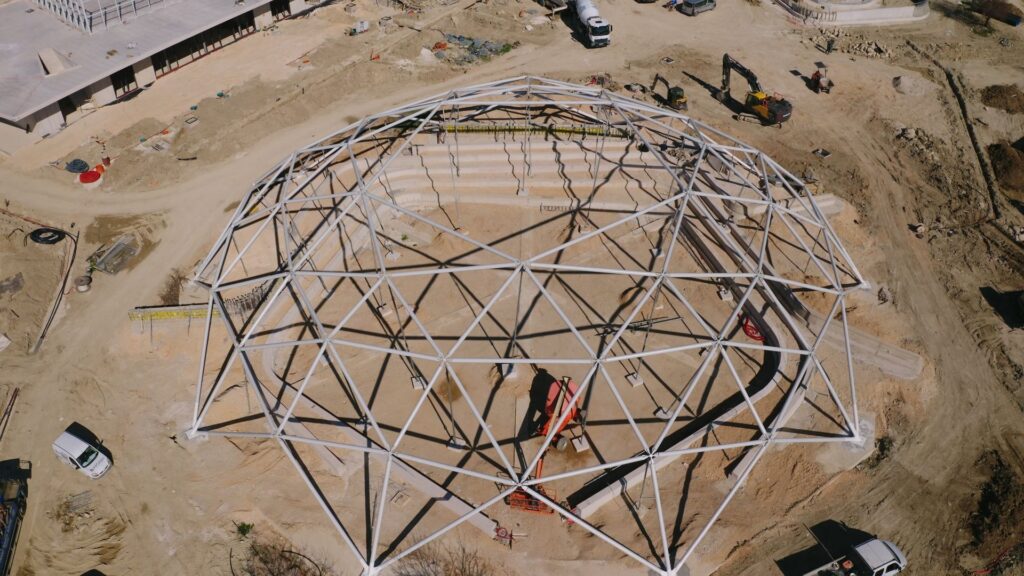 Radovi na Žnjanu ušli su u završnu fazu, a ovog je mjeseca dovršeno i postavljanje veličanstvene čelične kupole amfiteatra promjera 52 metra, visine 10,5 metara, čija je izvedba bila jako zahtjevna i predstavljala je jedan od najvećih izazova u ovom projektu jer je preciznost bila doslovno u dva milimetra. Sada se nastavlja izrada tribina amfiteatra te njegovo daljnje opremanje.