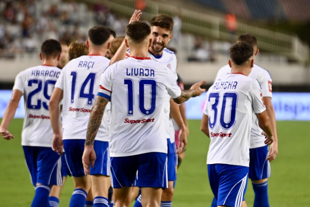 Hajduk: Ivušić; Karačić, Raci, Šarlija, Gonzalez – Pajaziti, Gullamon – Pukštas, Almena, Rebić – Livaja