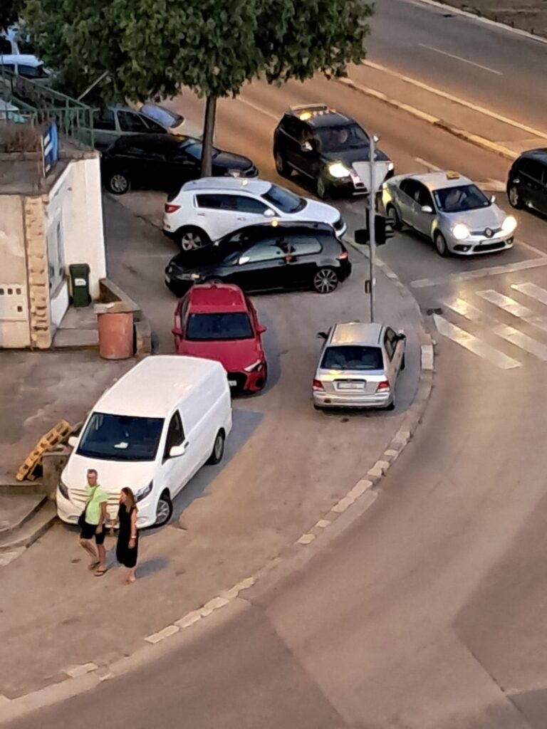 Divlji zapad na križanju Velebitske ulice i Brune Bušića u Splitu. Ljudi ostavljaju automobile po nogostupu kako im padne. Ako ovako budu nastavili, uskoro će automobili morati leći jedan na drugog.