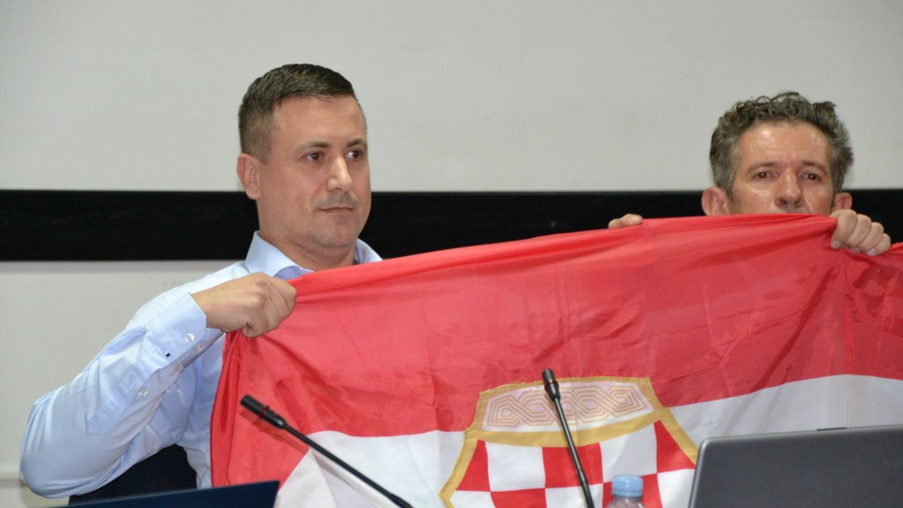 pokreta Aris Zlodre u vijećnicu je stigao sa zastavom hrvatske zajednice