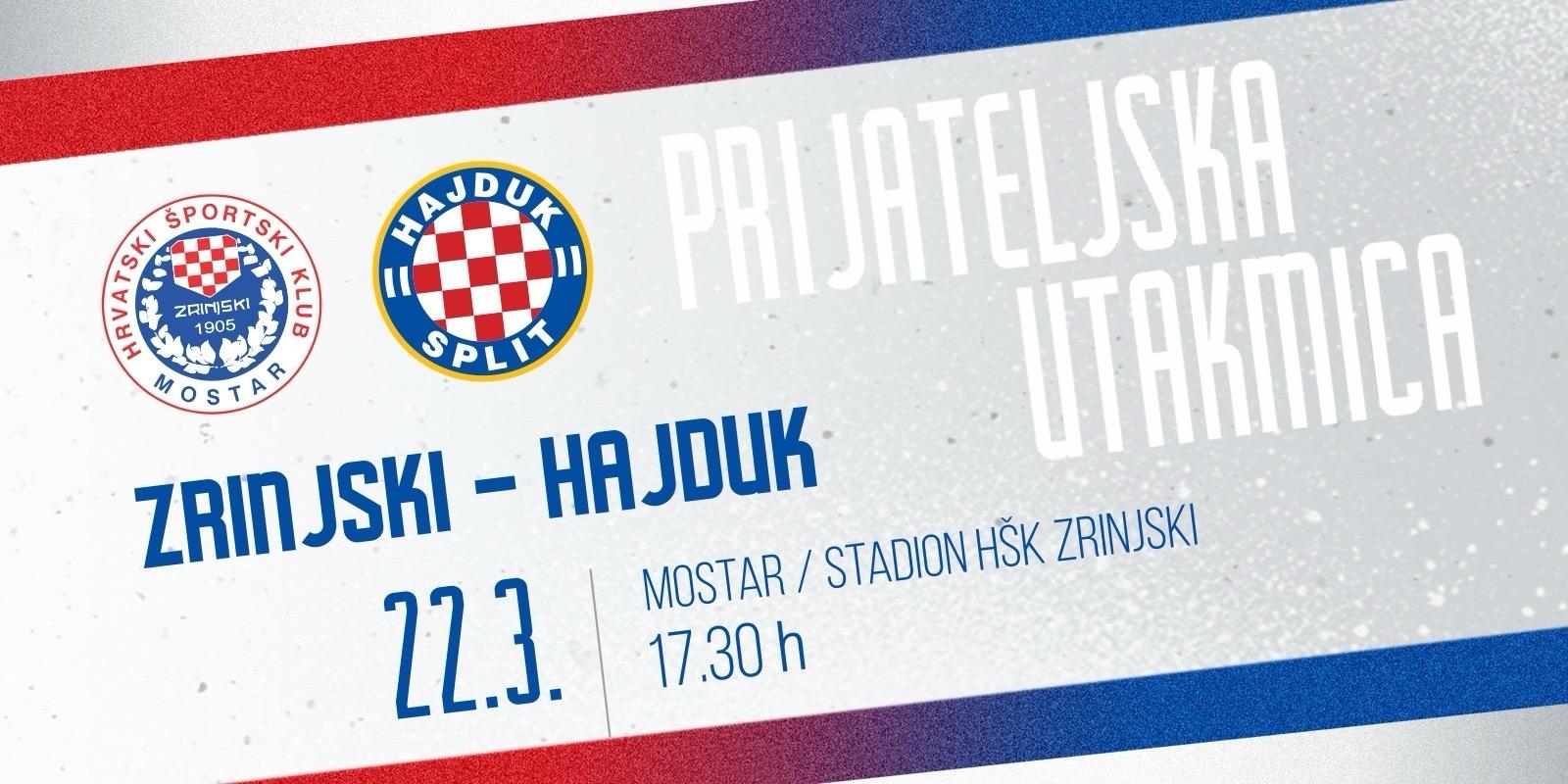HNK Hajduk i HŠK Zrinjski su postigli dogovor o odigravanju prijateljske utakmice, planirane za 22. ožujka, što će se poklopiti s reprezentativnom stankom. Susret će se održati na stadionu HŠK Zrinjski u Mostaru, s početkom u 17:30 sati.