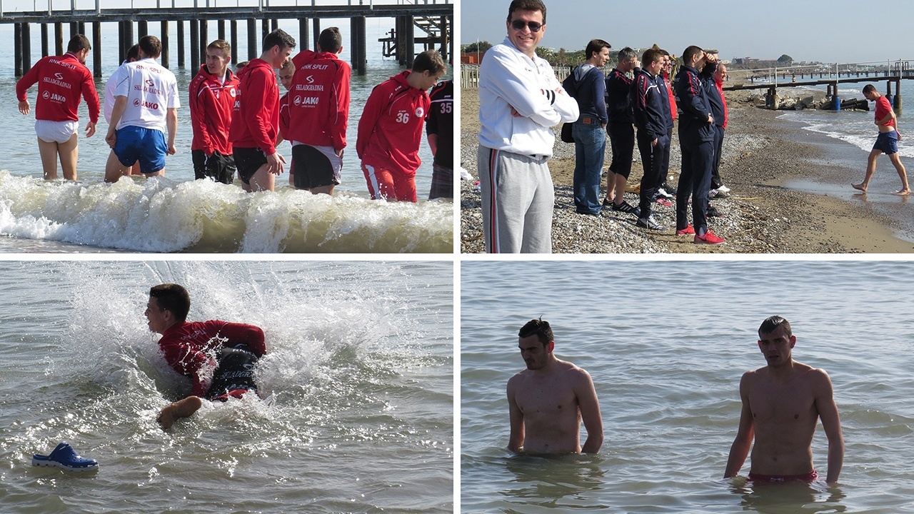 Naporan trening pa relaksacija u moru, tako otprilike izgledaju dva posljednja dana Splitovih priprema u Turskoj. U Beleku se danas temperatura penjala čak do 30 stupnjeva, pa su je trener Vulić nakon vrlo zahtjevnog jutarnjeg treninga poslao igrače na obližnju hotelsku plažu gdje su ohladili noge, a oni odvažniji su se odlučili i okupati. Led je probio fizioterapeut Damir Korjenić koji je bez zadrške prvi uskočio u more, zatim je Belle “potopio” Ercega i Bagarića, da bi se kasnije kupanju pridružili vratari Duka i Kukić, Mateo Galić…