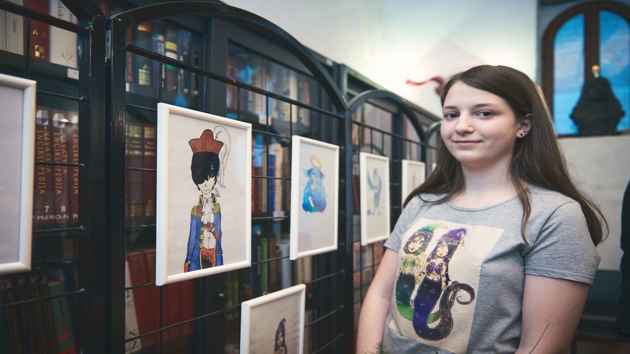 Jelena je odlična učenica 6. razreda Osnovne škole Majstora Radovana, a u ponedjeljak je na svojoj prvoj izložbi predstavila dvadeset ilustracija i crteža.