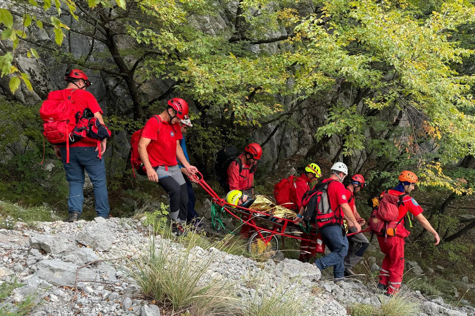 Na teren je izašlo 17 spašavatelja iz stanica Makarska i HGSS Stanica Šibenik. Prva grupa spašavatelja do unesrećene je stigla u 16 sati, gdje je nakon trauma pregleda i imobilizacije započeo transport u 16.30. U 17.10 sati unesrećena osoba je sigurno spuštena do podnožja planine i predana na daljnju medicinsku obradu, javlja HGSS Makarska.
