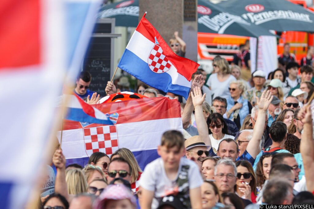 Navijači su počeli skandirati kapetanu Luki Modrići nakon čega je zaorila Thompsonava pjesma “Lijepa li si”. Čak je i gradonačelnik Nico Ruhle uputio nekoliko srdačnih riječi hrvatskoj reprezentaciji. Njemački trg je prožet fantastičnom atmosferom.