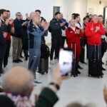 - 18.02.2024., Zagreb – Hrvatska vaterpolska reprezentacija nakon osvojenog zlata vratila se iz Katra sa Svjetskog prvenstva Photo: Jurica Galoic/PIXSELL