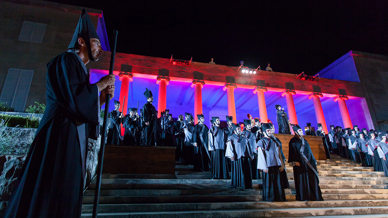 Nakon svečanog otvorenja ansambl splitske Opere premijerno će u mabijentu pred velebnom Galerijom Meštrović izvesti operu Turandot Giacoma Puccinija. Pod ravnanjem maestra Ive Lipanovića i u režiji Ozrena Prohića solisti, Zbor, Orkestar i Balet HNK Split izvest će posljednju operu velikog Puccinija. U naslovnoj ulozi Turandot nastupit će bugarska sopranistica Cvetelina Vasileva, Calafa će tumačiti bugarski tenor Ivan Momirov, sopranistica Valentina Fijačko Kobić bit će Liu, a nacionalni operni prvak bas Ivica Čikeš nastupit će u ulozi Timura.