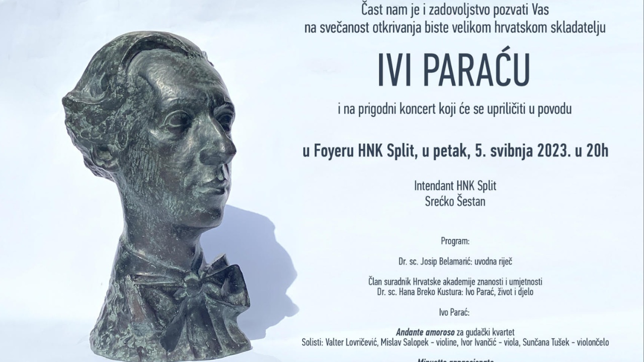 Otkrivanje biste Ivi Paraću uz prigodan koncert ovog petka u HNK Split