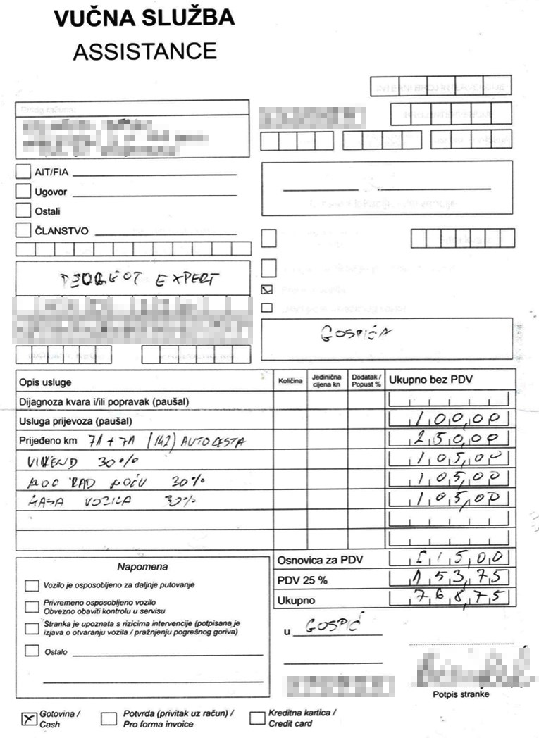 -Strance baš znaju oderati, koji su ionako preplašeni zbog nezgode u stranoj zemlji. Od Zira, tj. Macole do Gospića naplaćuju oko 300, 400 eura. Toliko bi koštao Gospić – Zagreb kod normalne šlep-službe, govori jedan od sugovornika.