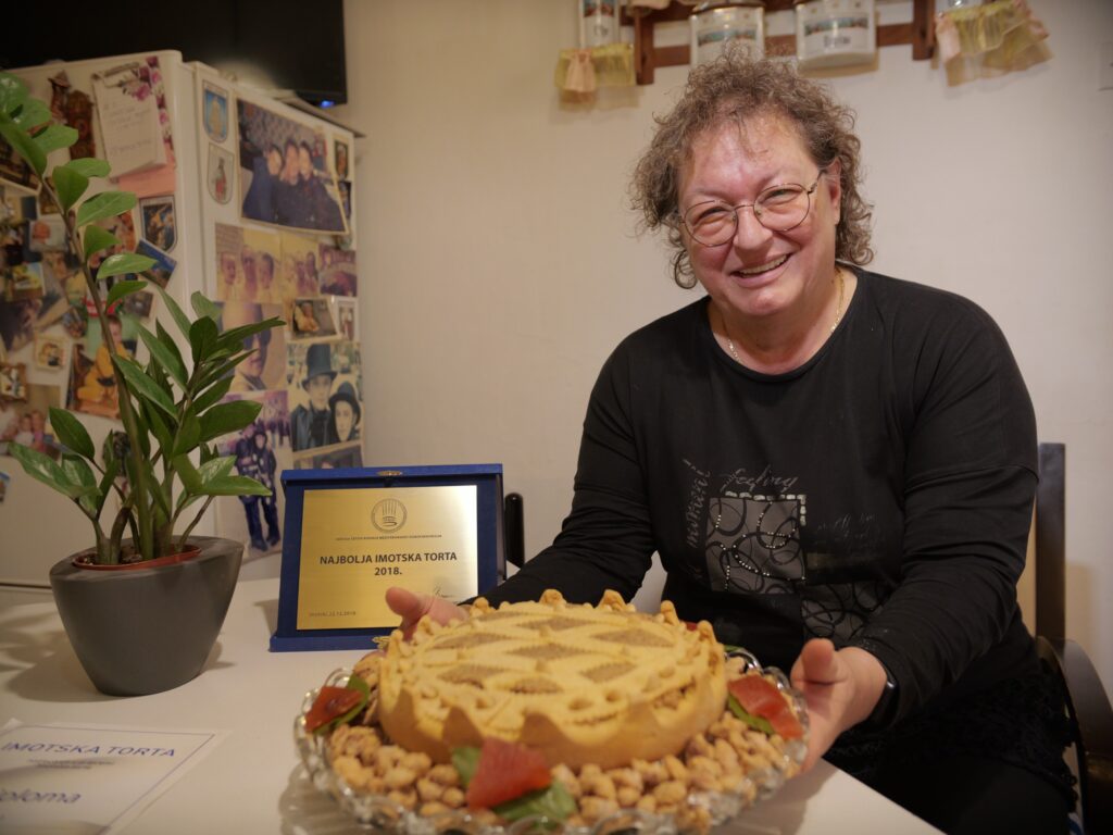– Moja nona zvala se Katina, bila je iz bogate imotske obitelji Vučemilović, a kako je imala osmero djece, uvijek je radila neke fešte pa se redovno na njima mogla vidjeti i imotska torta. Ta imotska torta po mnogočemu je poznata, ali najviše po tome što u sebi ima deset mirisa koji joj daju onu potpunu aromu, zapravo ono što imotska torta i jest – govori tako Katinina unuka Maja Nikolić (88).