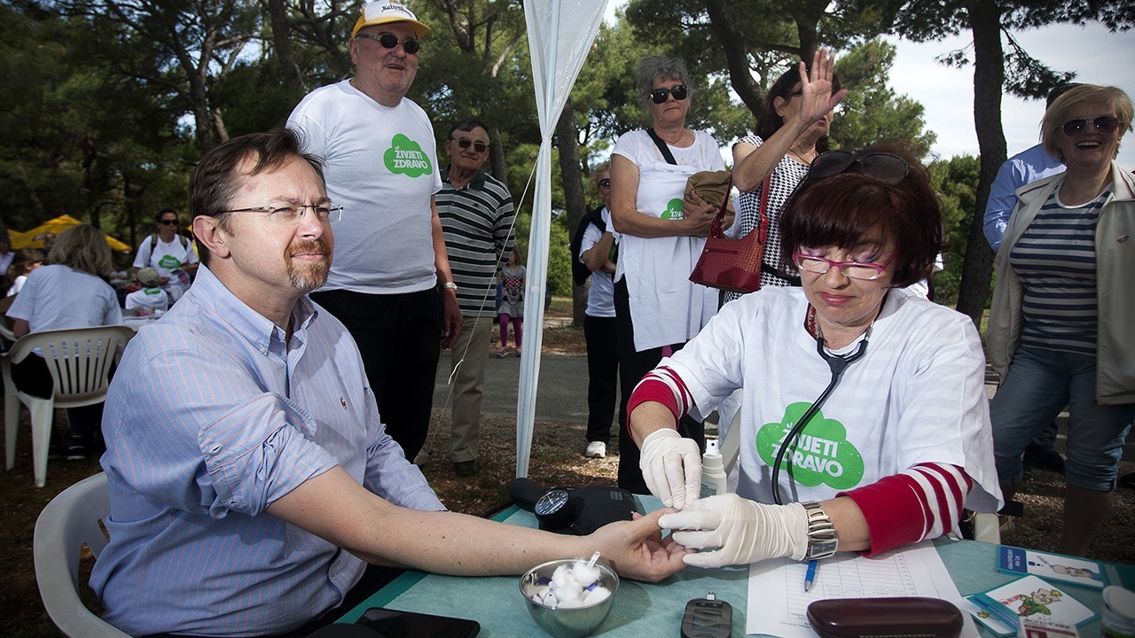 – Svi mogu svakog dana odšetati tih pola sata za svoje zdravlje – rekao je i preporučio građanima da svoje rođendane obilježe odlaskom na kratke preglede obiteljskim liječnicima. Istaknuo je da je cilj hrvatskoga zdravstva da u roku od pet godina prosječni građanin doživi dvije godine dulje.